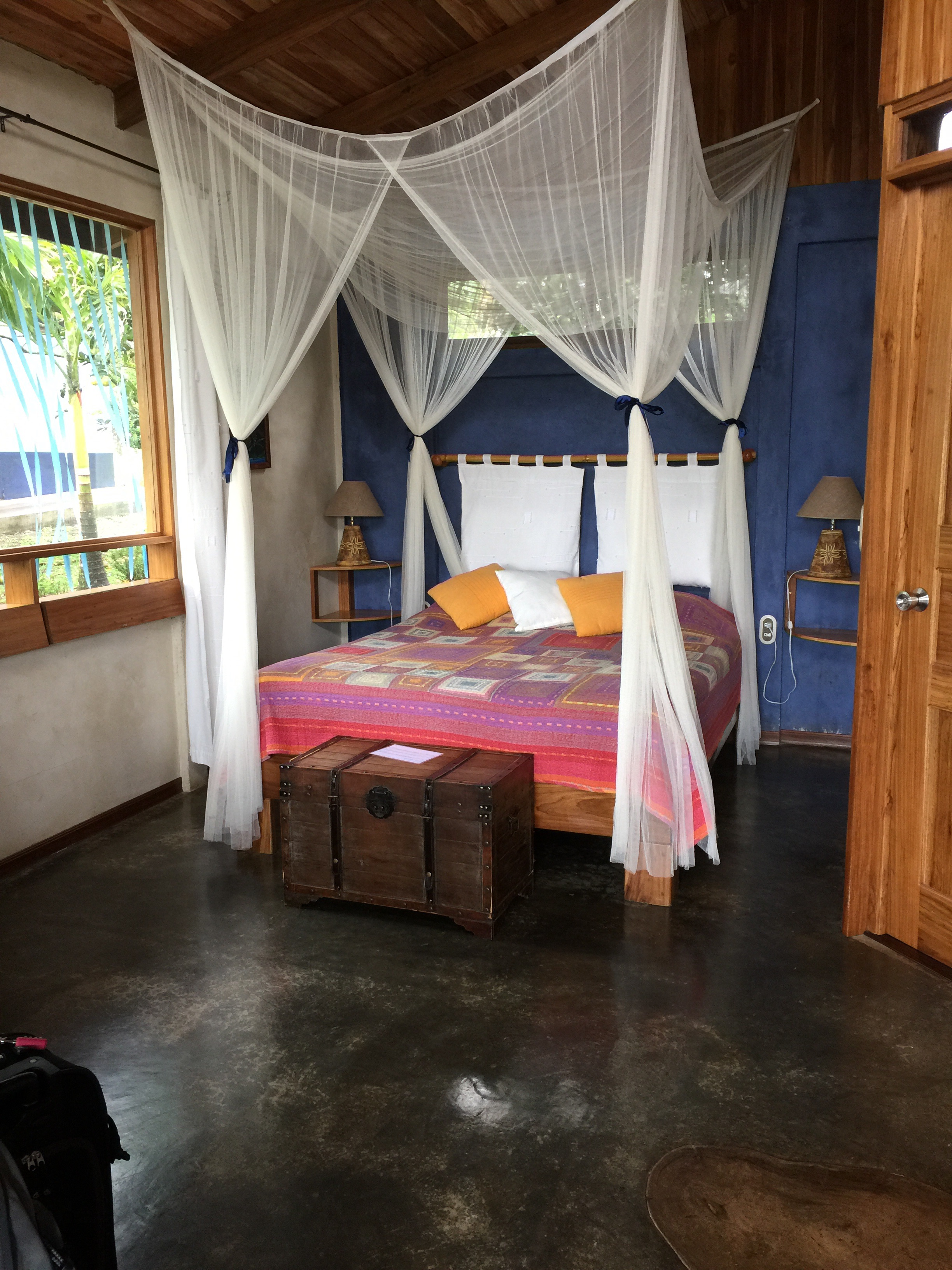 Luckily our new abode raised my spirits as it is fit for a princess. Maybe a little feminine for Steve but I love it! Mosquito nets draped around a pretty bed, a rain shower in the bathroom, hammock on the patio – I’ll just stay here and read my book!