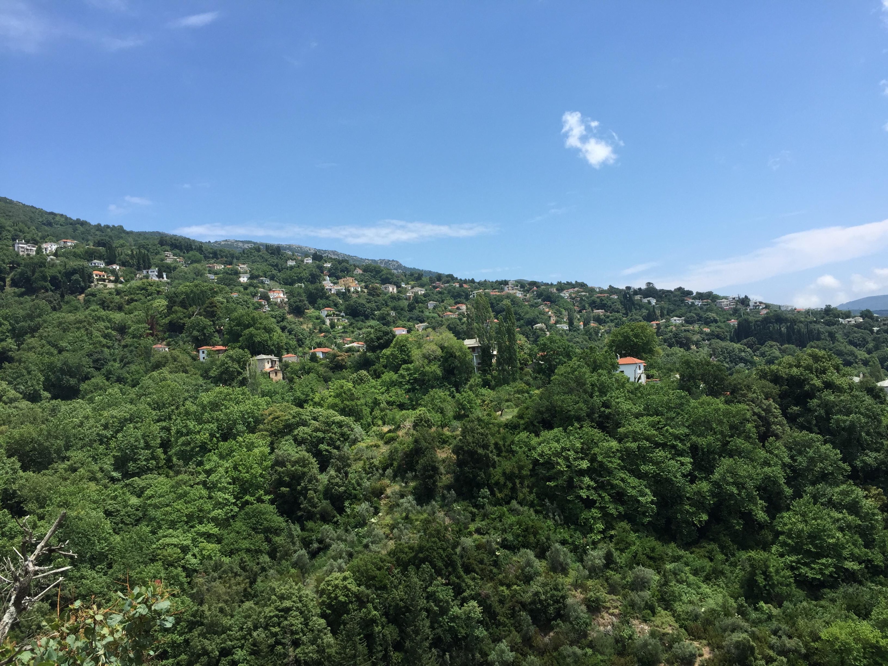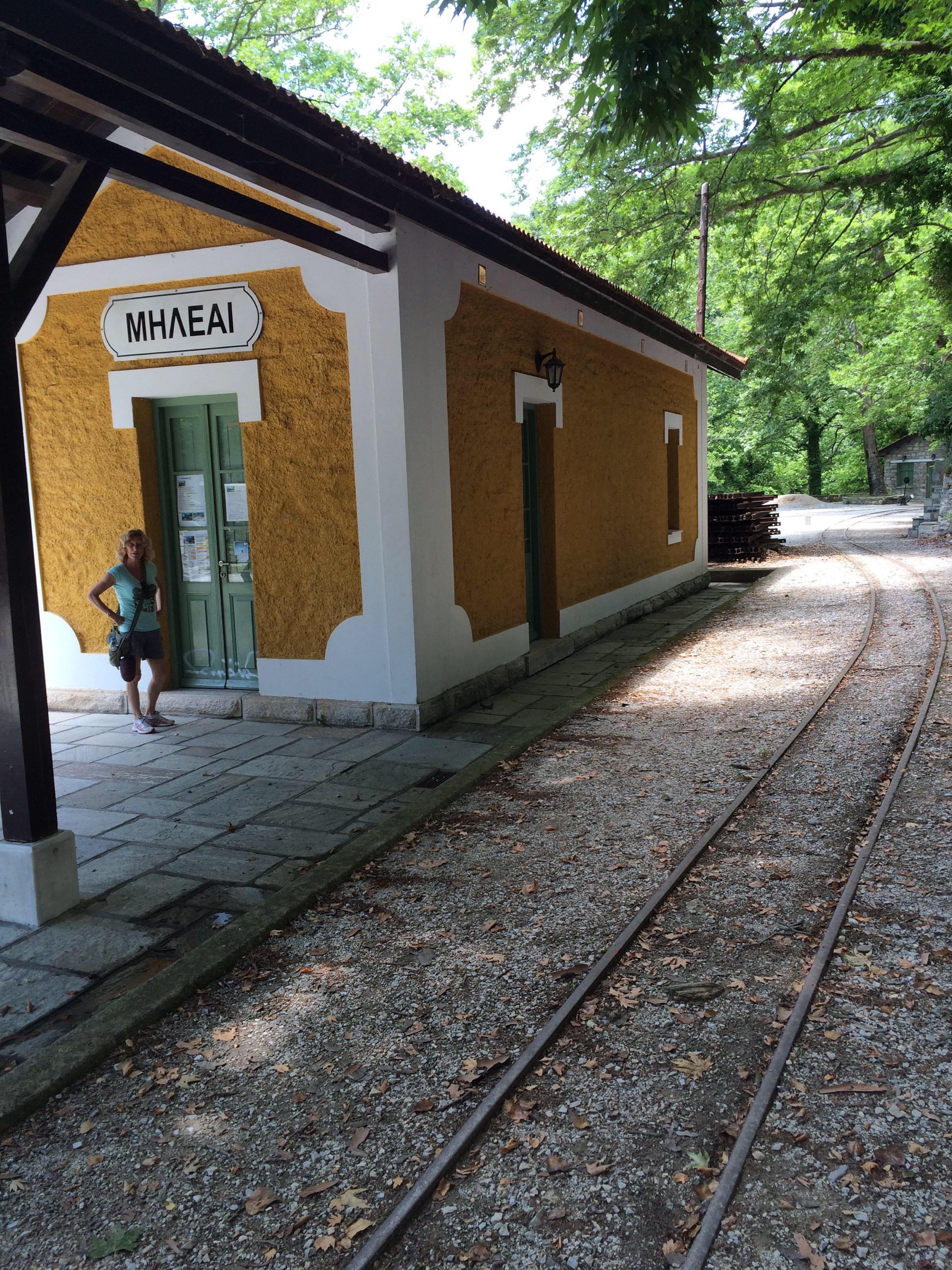 On the return journey, we walked along the narrow gauge train track that runs from Milies to Ano Lehonia. It was built in the 19th century but now only runs as a tourist attraction and not on Wednesdays, so we were quite safe.