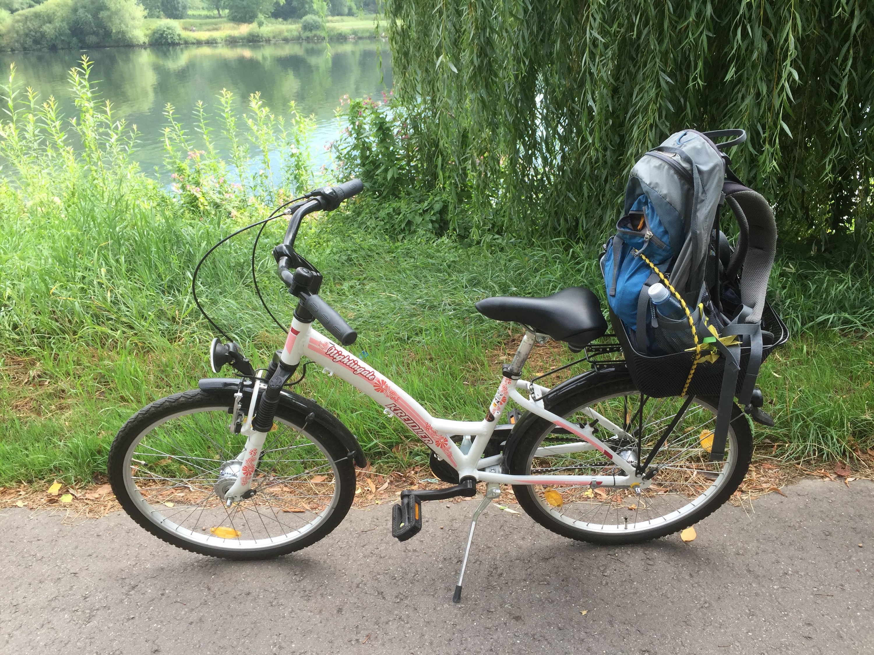 Franz went off for ages and eventually came back with a young girl’s bike. Luckily it wasn’t pink all over with tassley things hanging from the handlebars but it was still a child’s bike. Swallowing my pride, I got on it. It was the perfect size.