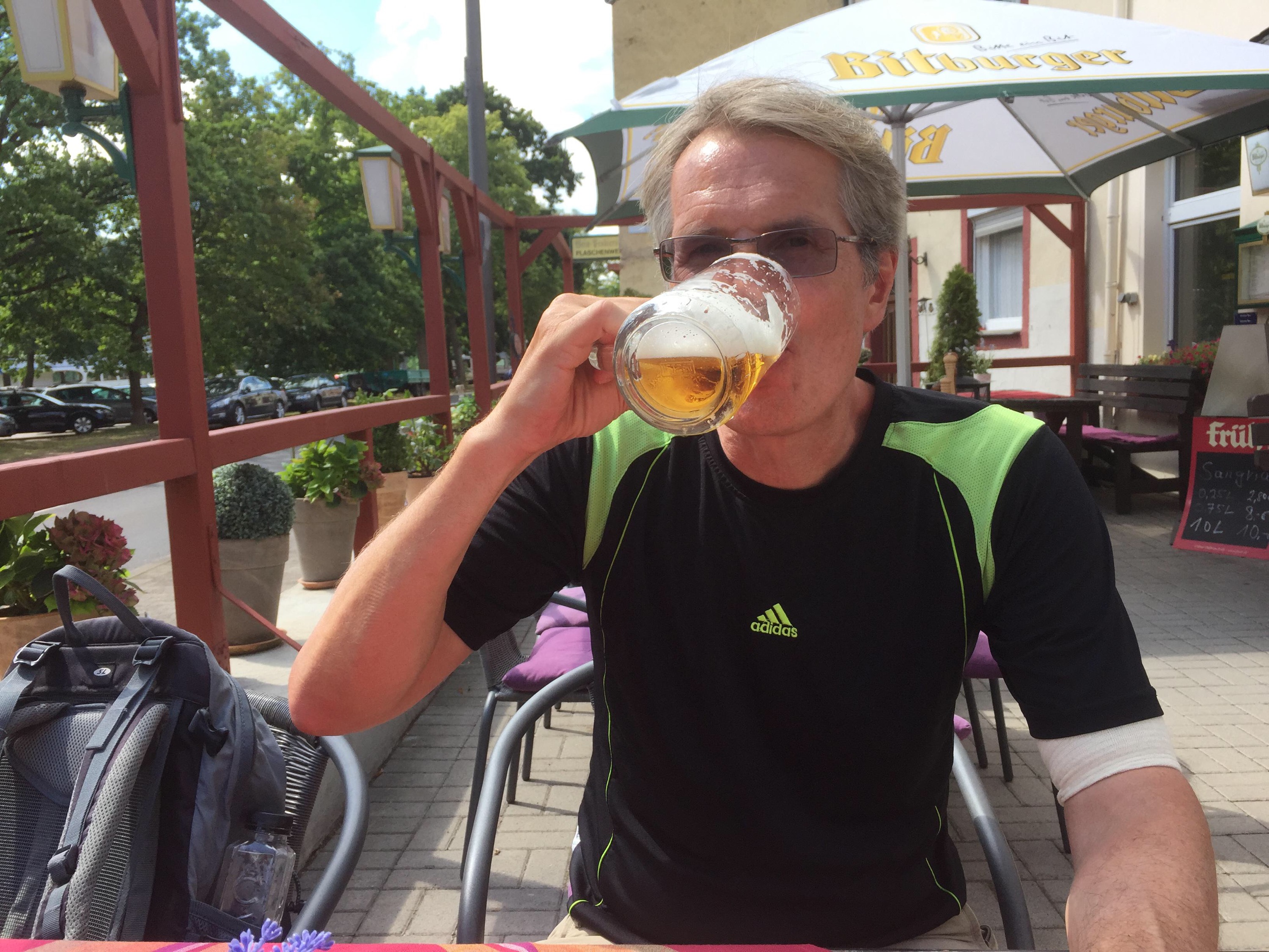 Steve didn’t seem to be suffering as much as me so I tried to be stoic, but after a while I saw him start to lift himself out of the saddle at every opportunity. My suggestion to stop and have a beer was met with even more than usual enthusiasm.