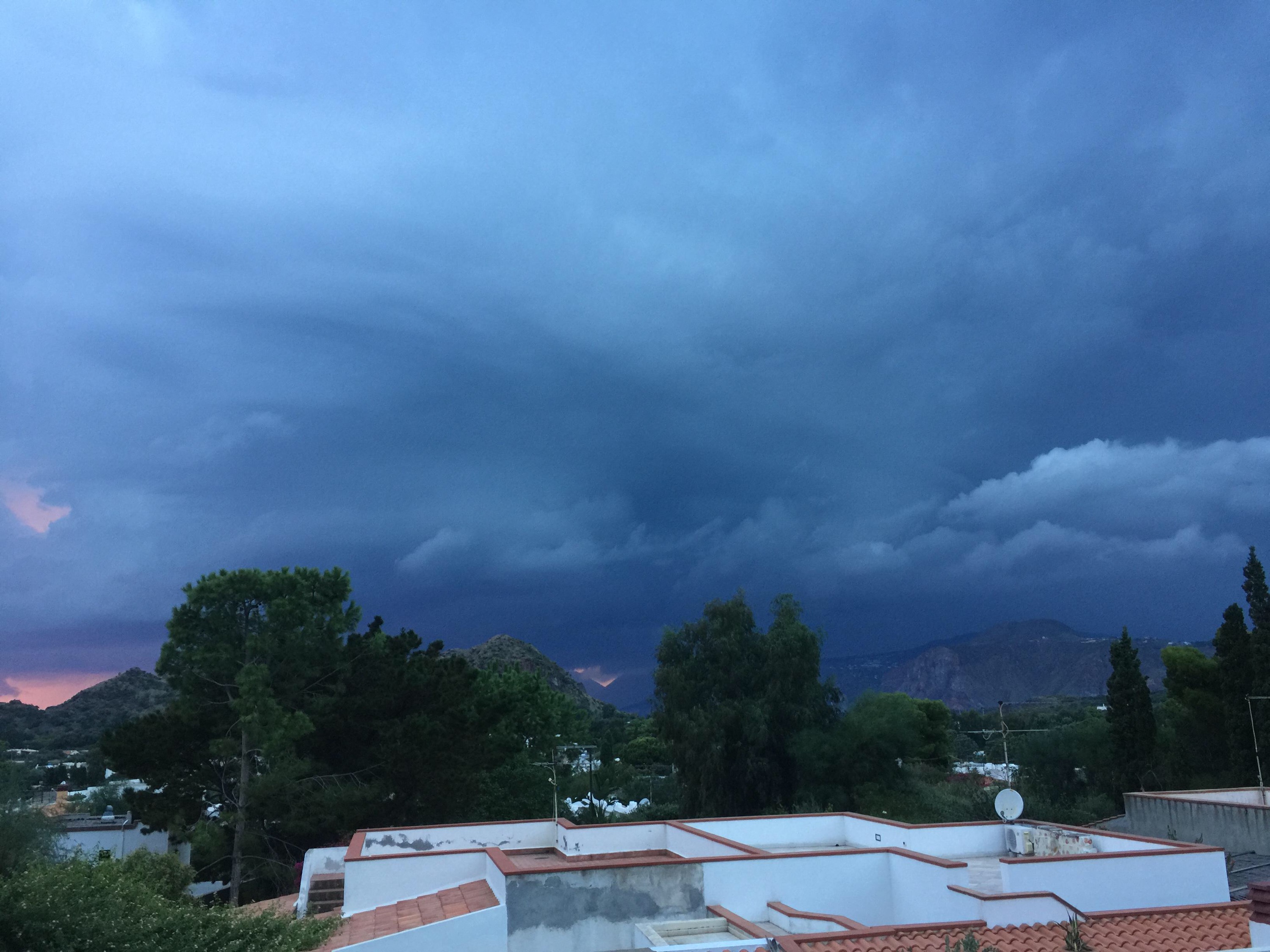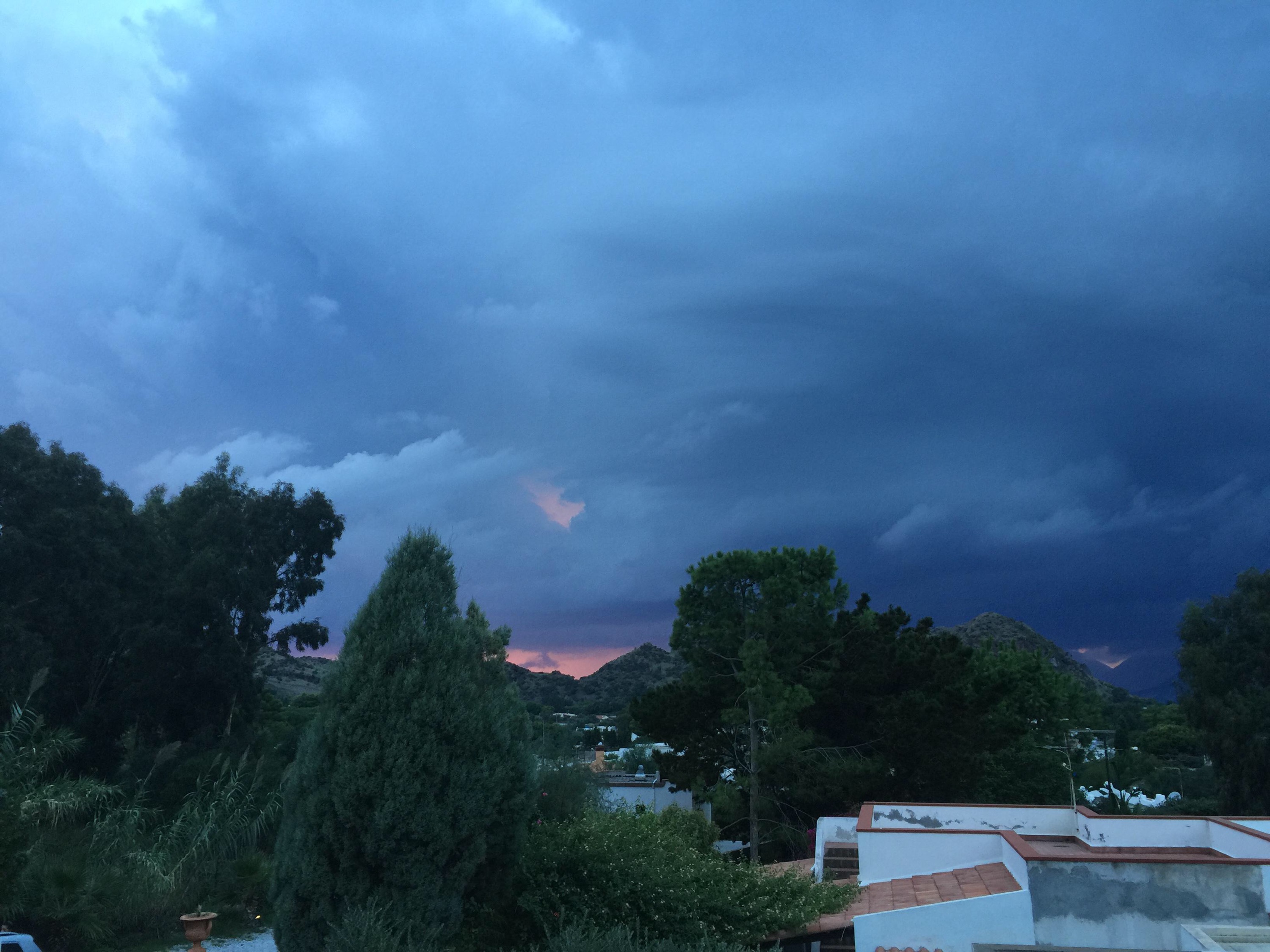Right now, I am watching the storm we drove through arrive on the island. The sky is blue/black with a touch of blood red as the sun is setting. We’re in for a bit of a downpour!