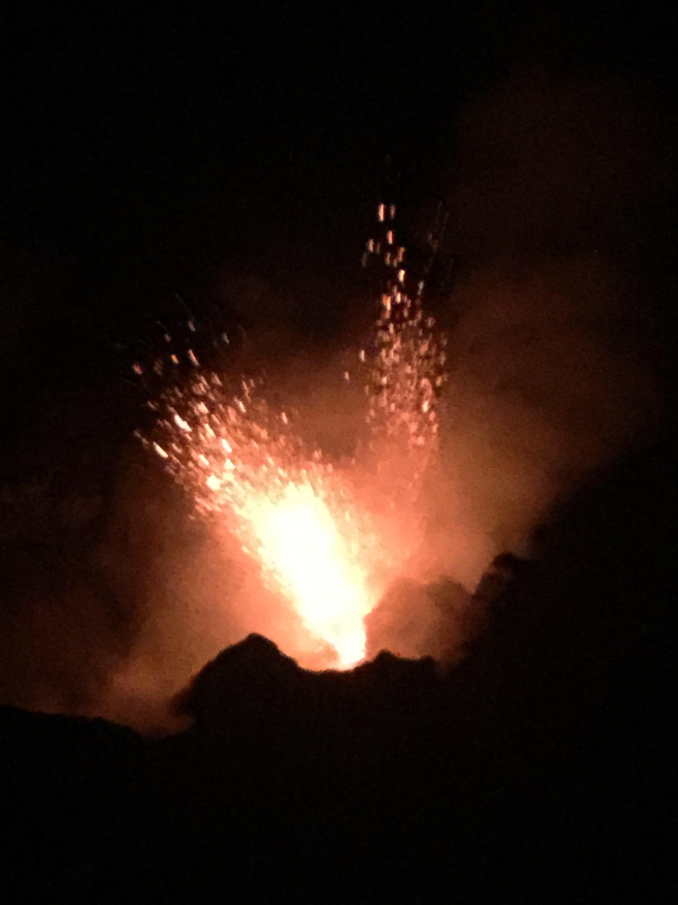 I had expected some steam and gas from the craters but we got so much more. Huge glowing red blasts of magma and rock spewed from the crater. Even when there wasn’t a massive explosion , you could see rocks being tossed about in a soup of glowing lava deep in the crater.