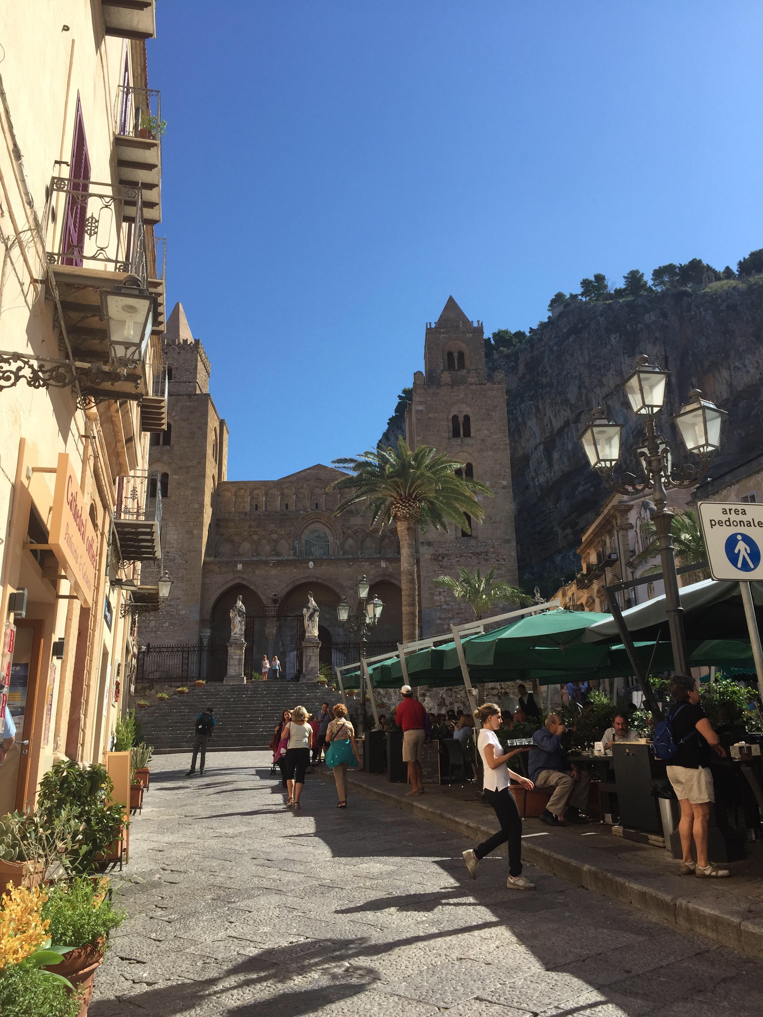 Today we explored Cefalu. It’s a very old town and was in Arab hands for a while. There is a large limestone outcrop (La Rocca) with castle ruins at the top. The views over the town and the sea are breathtaking.
