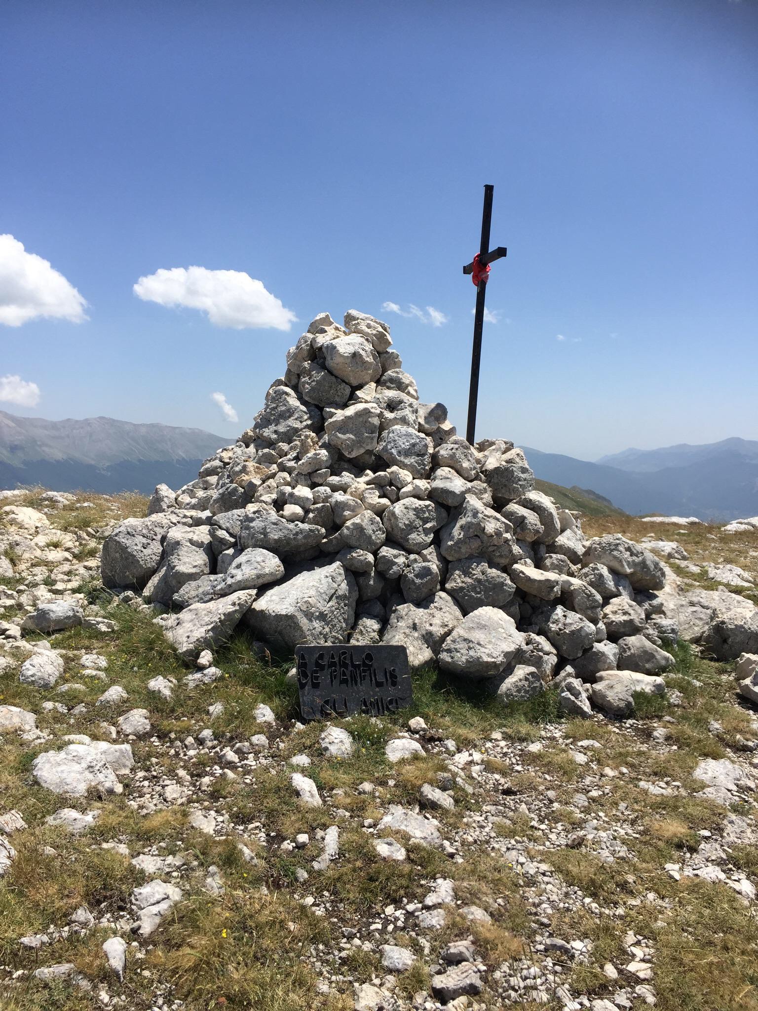 Eventually we got to the top which was amazing. (2061m). A woman had left a buff and dog tag attached to the cross at the summit. A plaque below said it was dedicated to Carlos, her love. Very poignant.