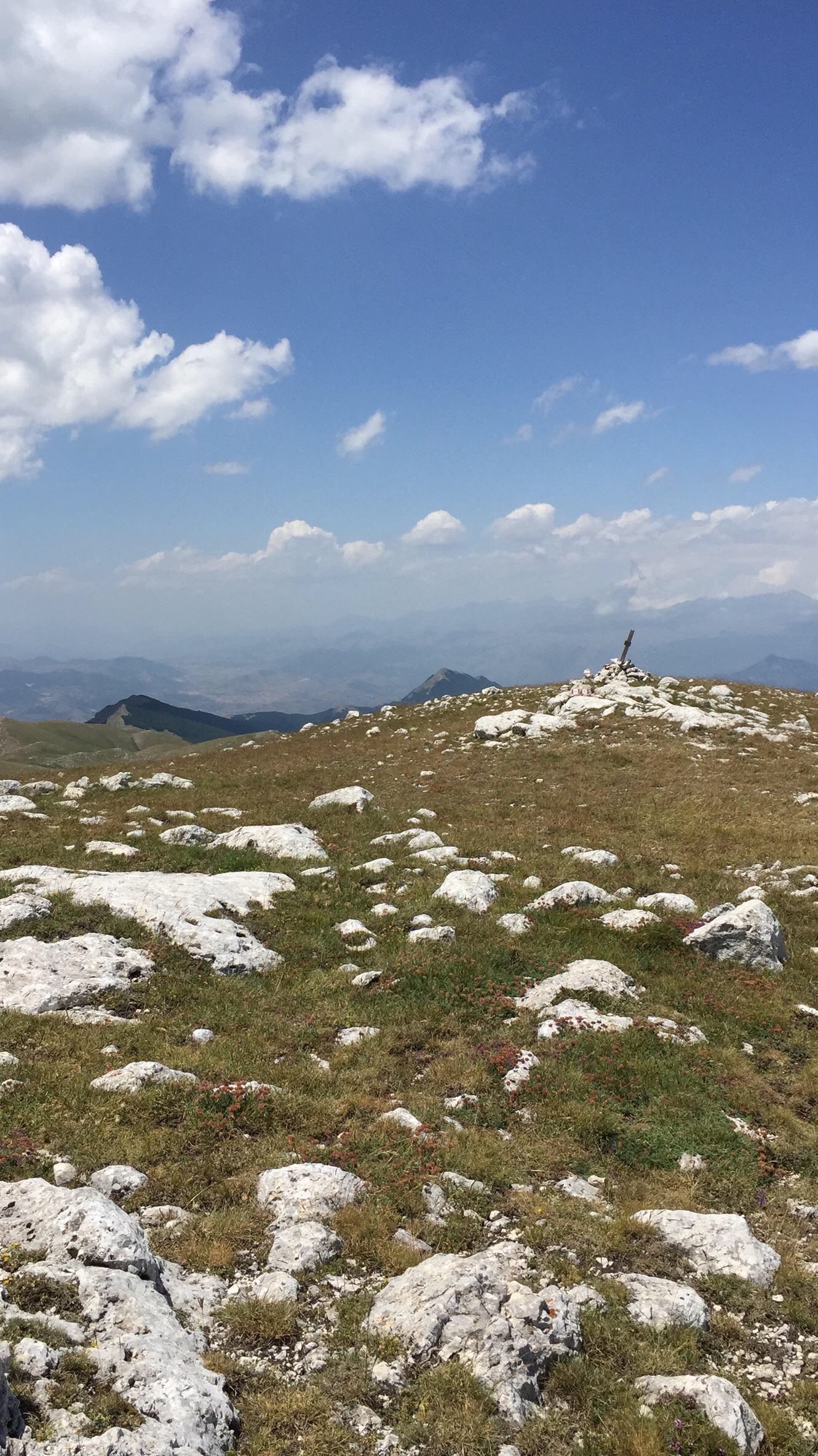 Eventually we got to the top which was amazing. (2061m). A woman had left a buff and dog tag attached to the cross at the summit. A plaque below said it was dedicated to Carlos, her love. Very poignant.