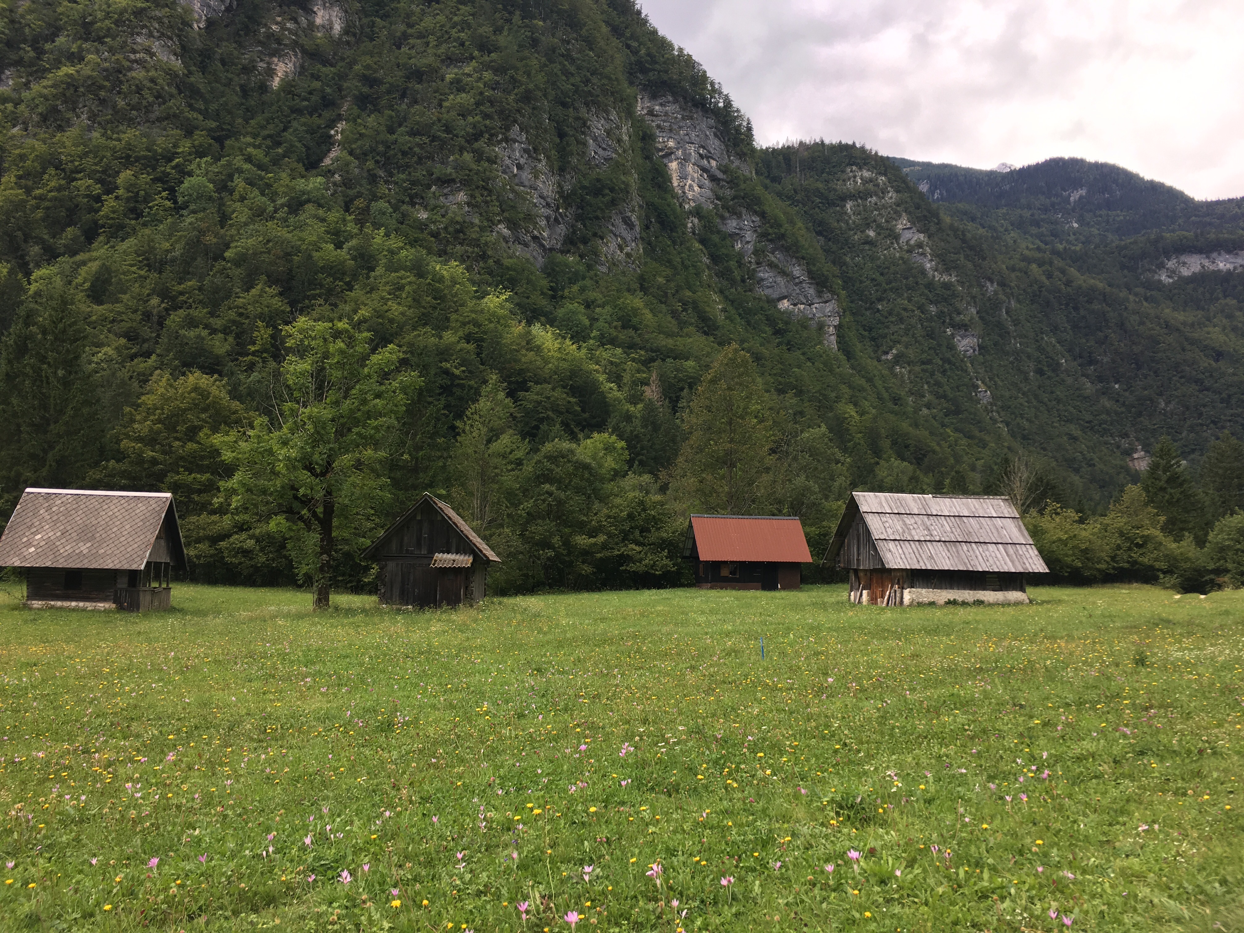 Even with a tea stop (and in Nik’s case a blueberry pie stop) and not arriving quite where we expected to be (as in getting lost), we were back in Stara Fuzina by 4 so the serious issue of packing overnight rucksacks could commence.