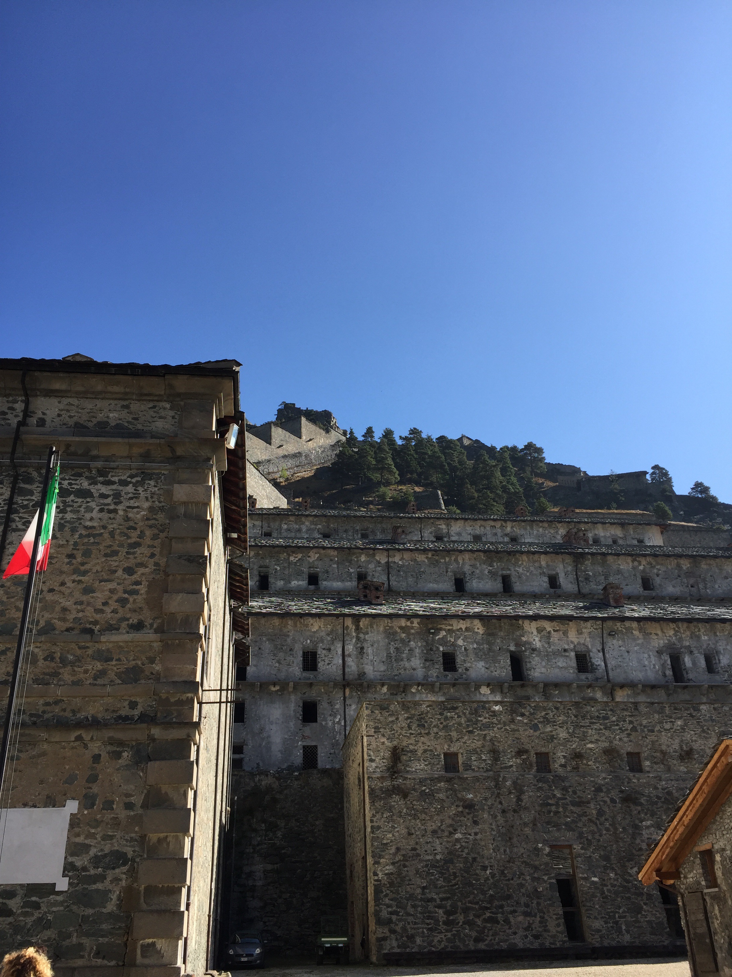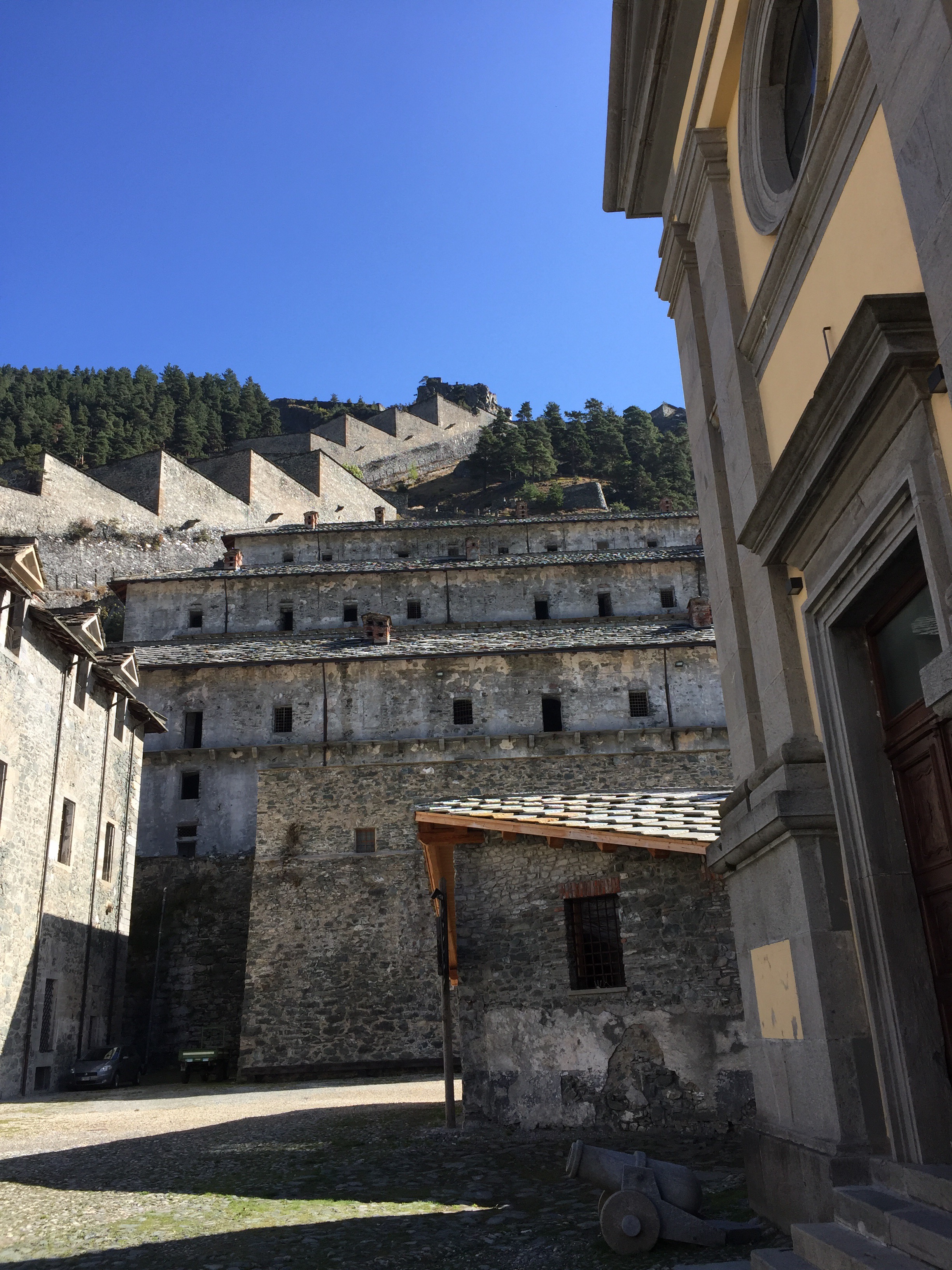 My imagination was caught by pictures of the Forte di Fenestrelle. A military folly, it has a 3km long wall and an indoor staircase of nearly 4000 steps connecting the complex of forts and buildings. It’s built on a hill, with majestic views over the mountainous area, 40 minutes drive outside Pinerolo.