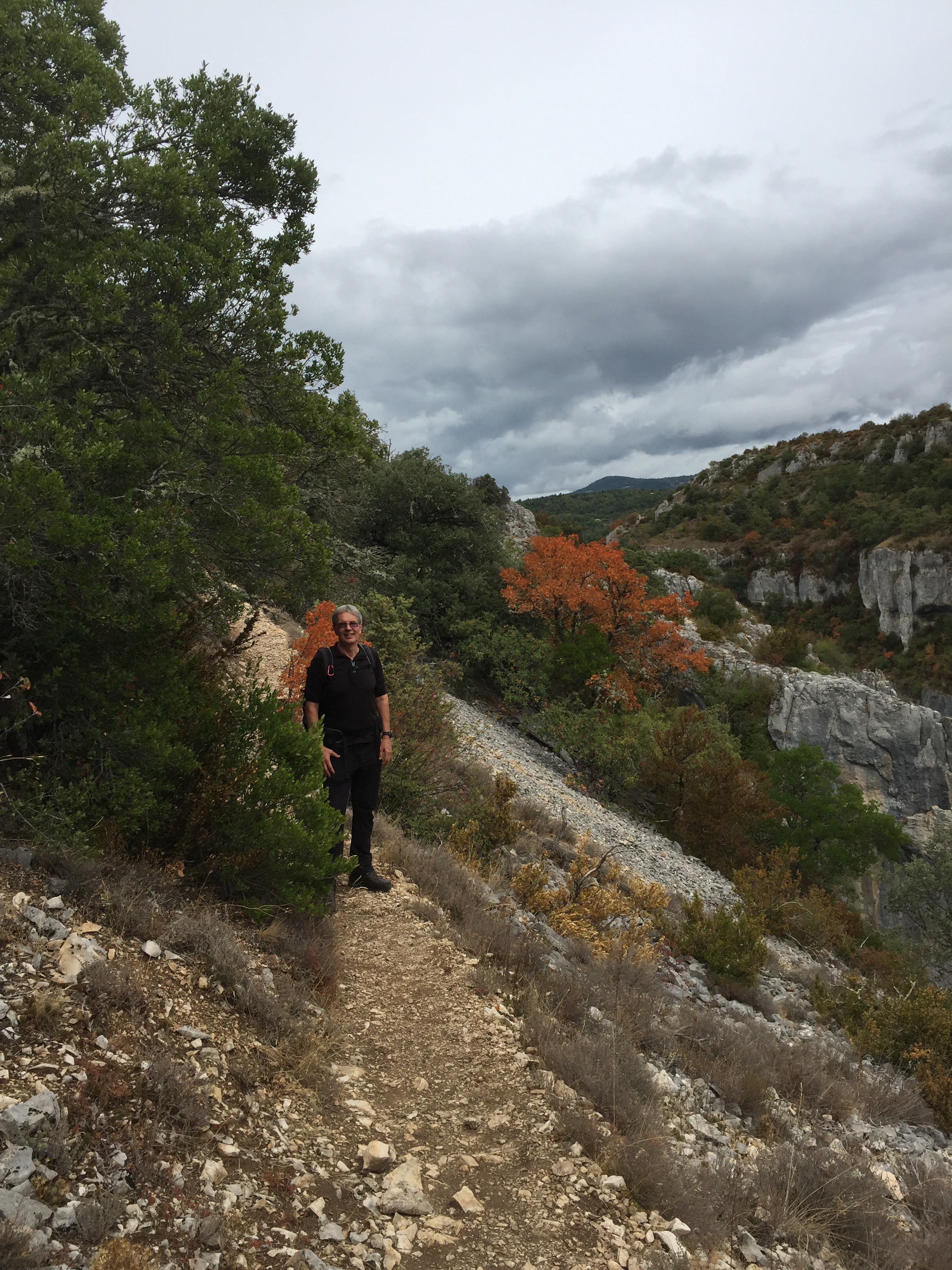 It was a dull but reasonably dry afternoon by the time we arrived at Gorges d’Oppedette. I have to say it didn’t look anything special from the car park and as it wasn’t exactly warm (talking t-shirt, fleece and coat) my enthusiasm for a 3.5 hour walk was low.