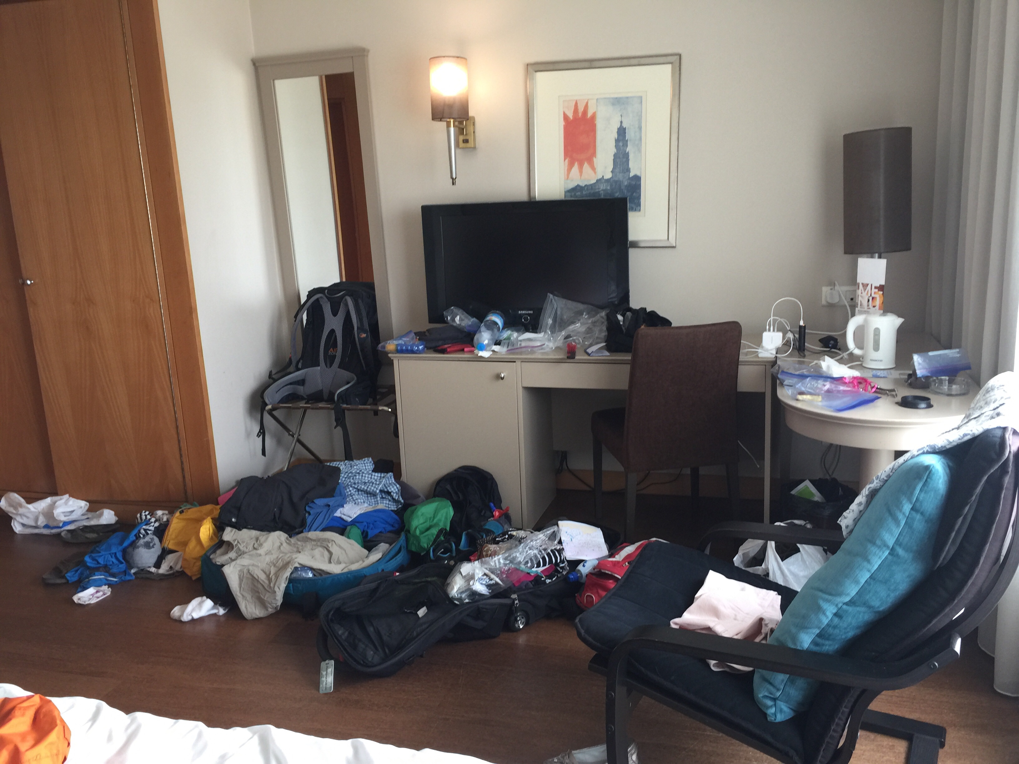 No scenic photos of our last day but here’s a photo to challenge any untidy teenager. The dark side of travel!