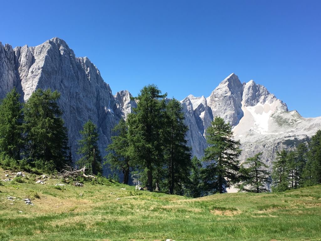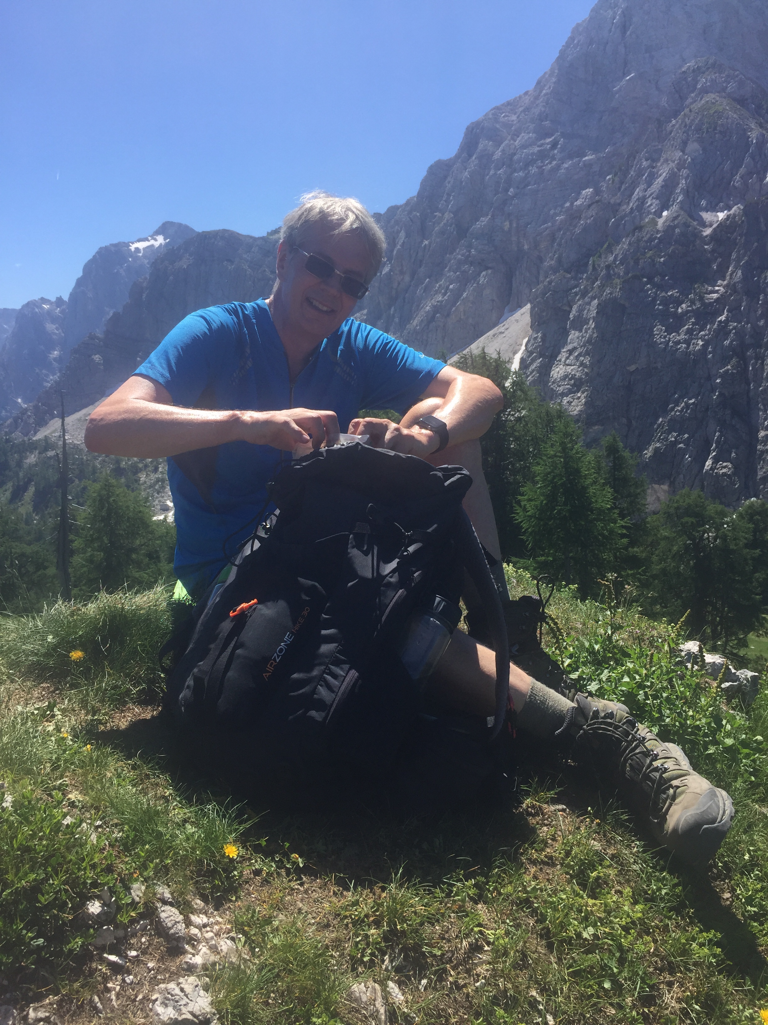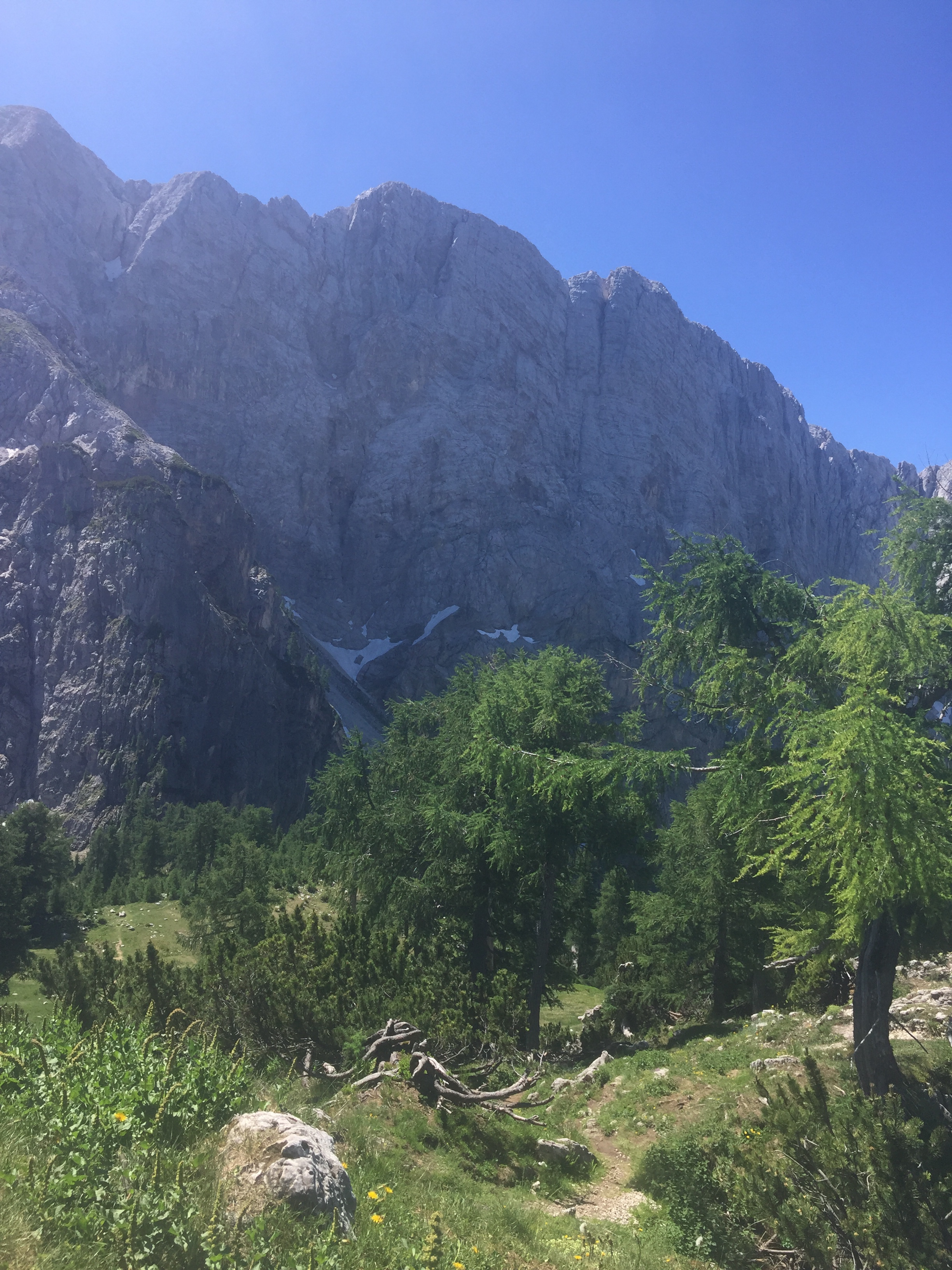 The walk starts at the pass and then you take a right turn signposted to Sleme. It’s quite steep but nothing terrible. There’s a saddle at Vratica where the path divides. Unless you are an experienced mountaineer or bonkers, do not go left. It leads to something called the Hanzova Pot. We saw some people on it and they were struggling. It looked terrifying. There was a helicopter circling later in the day and I hope it wasn’t for them.