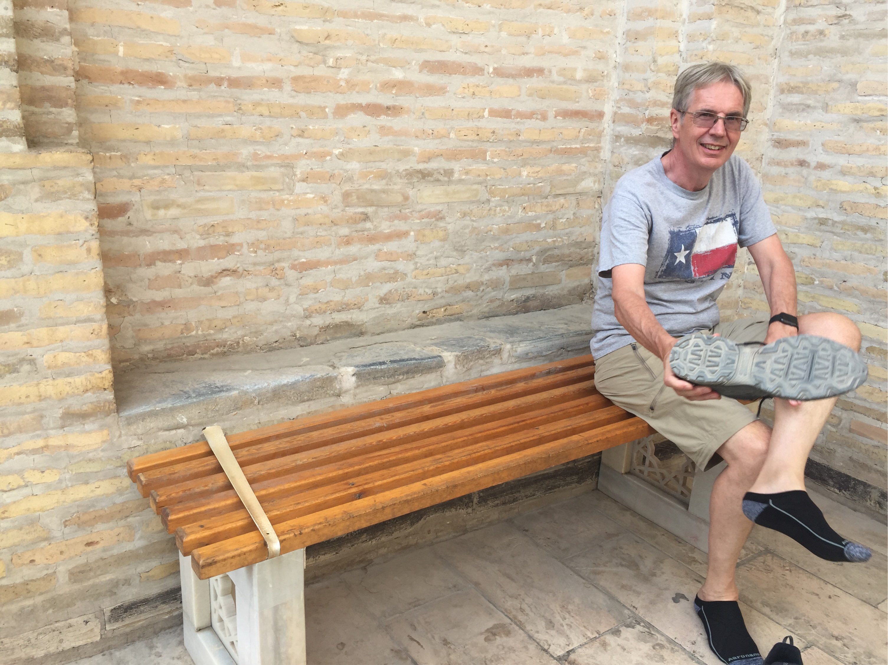 I didn’t have time to mention it yesterday but we have an extraordinarily long tap in the bath. It sticks out horizontally and made for a very uncomfortable shower until I realised it can be turned to the side. It’s come in very handy for washing feet . Wearing sandals means when we get back to our hotel my feet are caked in sand and black dust.