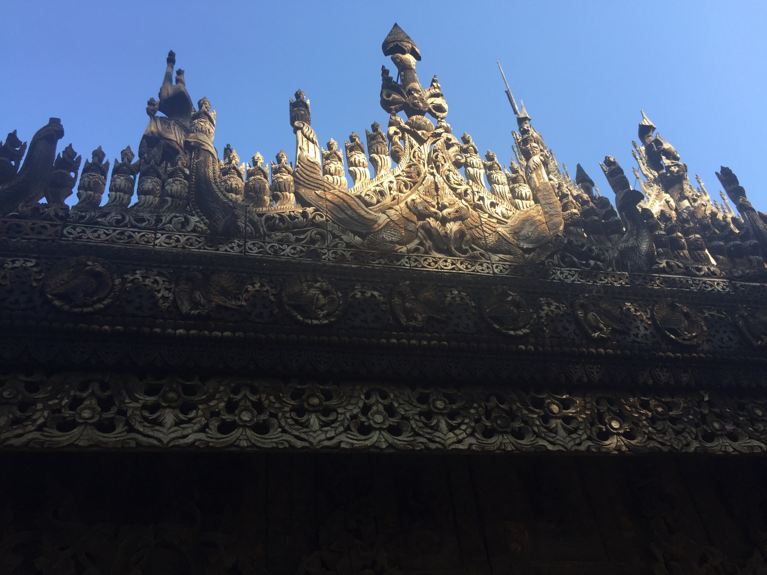 A quick burger stop then it was off to Shwenandaw monastery. It is an old, wooden monastery and quite small. Add a bus load of Chinese tourists and you struggle to find a space where someone isn’t taking a selfie or pushing you out of the way to get their perfect shot.