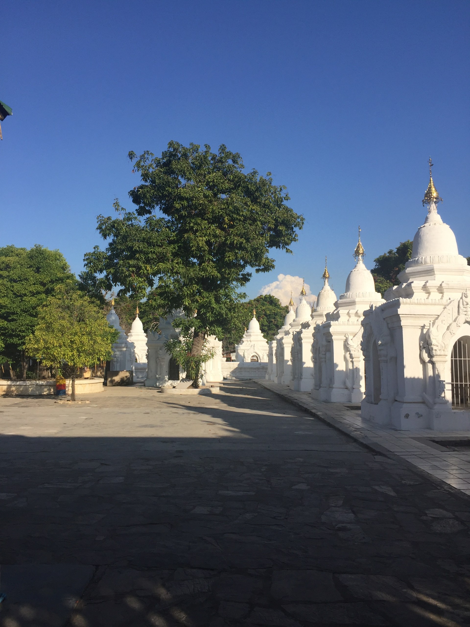 As a final push for our sight seeing day, we headed for the Kuthodaw Pagoda. Steve was at the end of his capacity for temple viewing but as it wasn’t too far, we pushed on. It was good we did. The best one yet, with hundreds of shrines containing inscribed slabs – the world’s biggest book apparently.