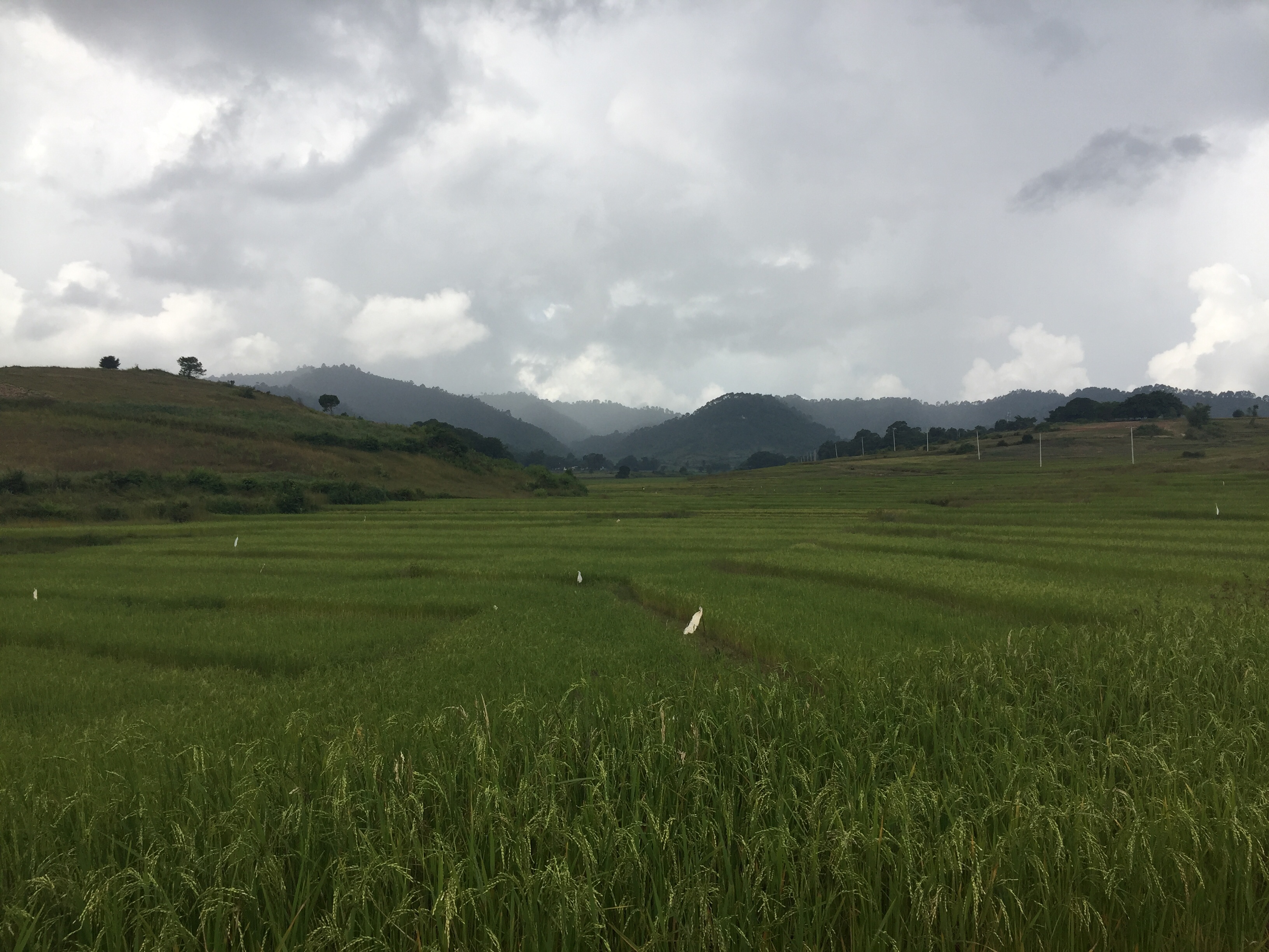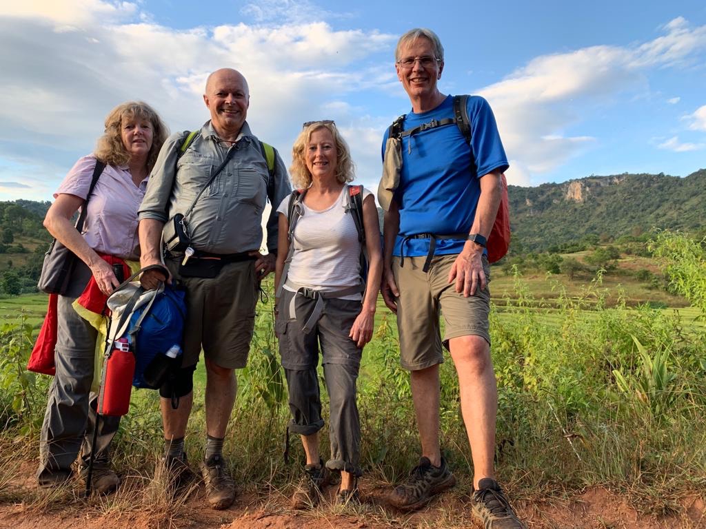 Our route was along thin mud tracks between fields and before long we were slipping and sliding everywhere. To make matters worse, leeches were trying to attach themselves to mine and Jan’s shoes and ankles. Toto plodded on stoically but Steve started making noises about if it carried on, he’d go back to Kalaw. Luckily such an opportunity never arose and eventually the rain subsided.