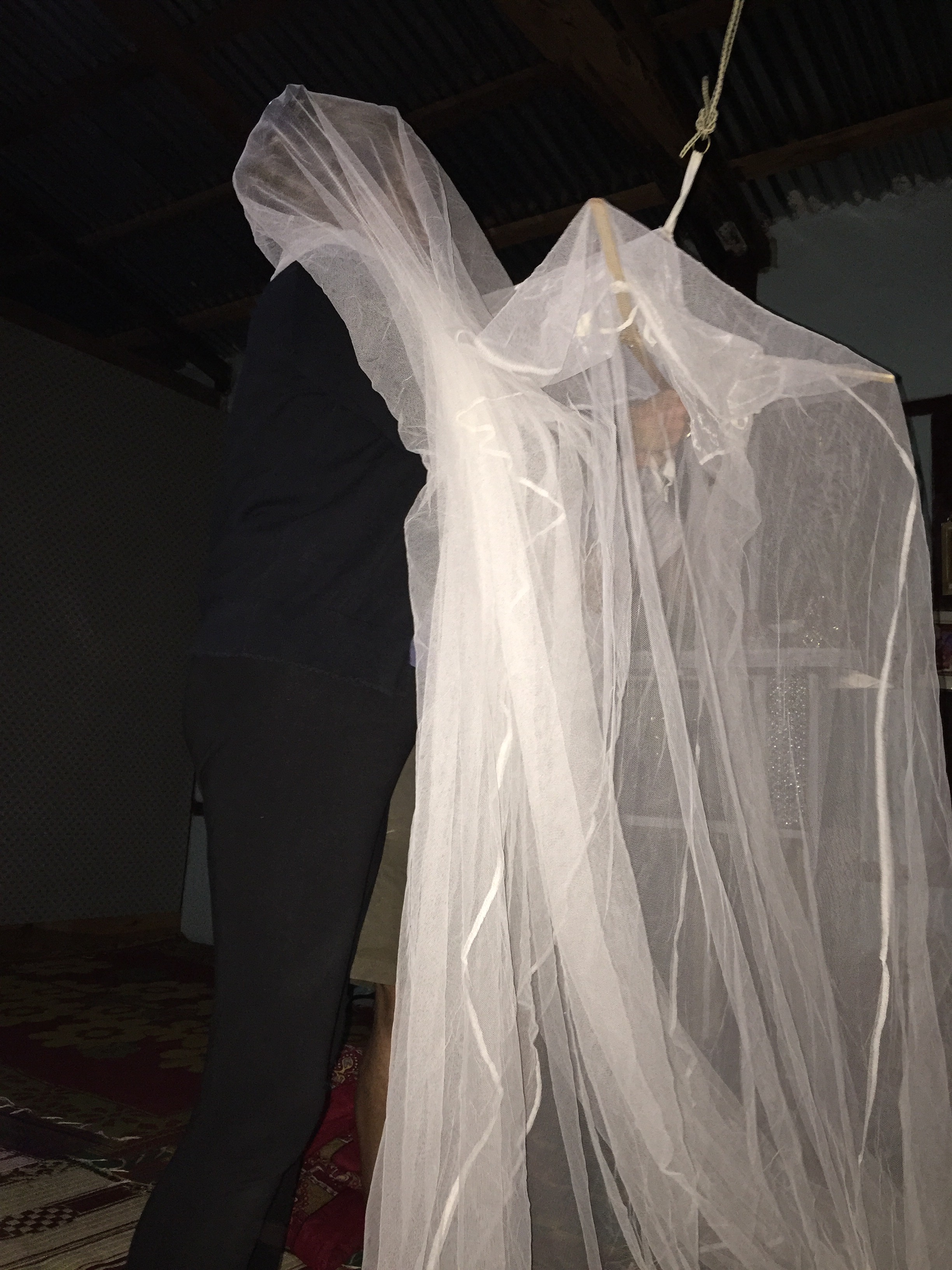 Toto showed us the “shower” which I didn’t avail myself of and the toilet was a bit of a walk from the house but otherwise everything was fine. The family had given up their room for us and our beds were thin mattresses on the floor. We brought our own mosquito nets which were quite the event to put up.