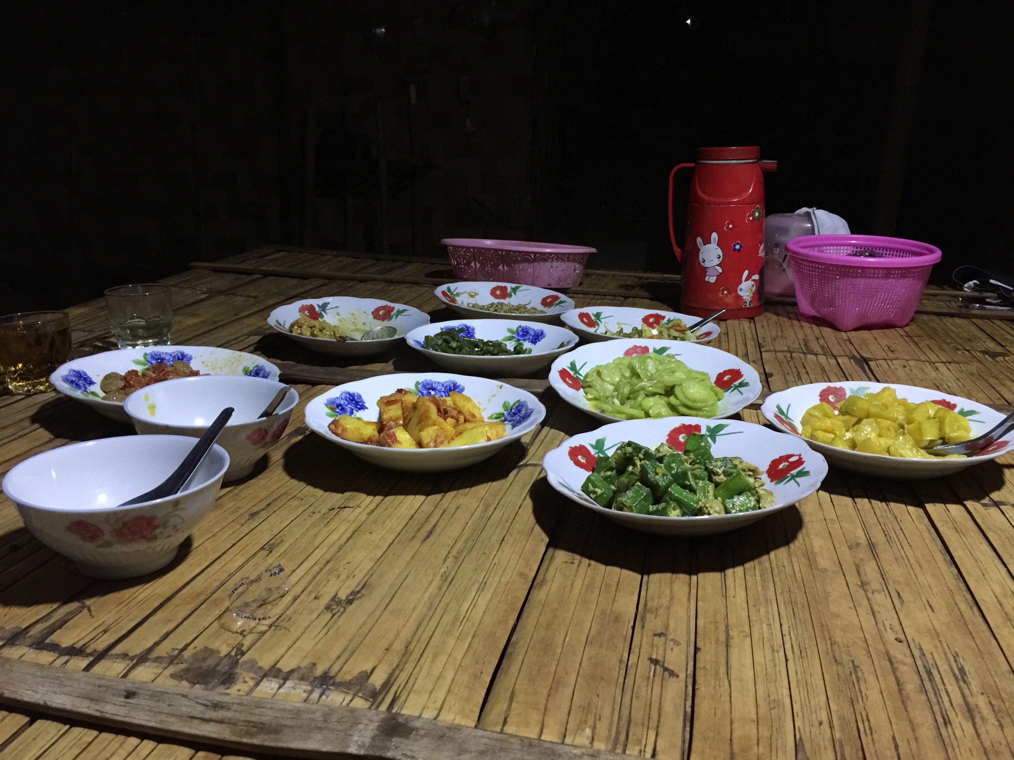Dinner was a feast. The dishes just kept coming. All vegetarian, all delicious and made with care. Toto said the lady had been cooking all day for us. We all did our best to eat as much as we could but we were beaten.