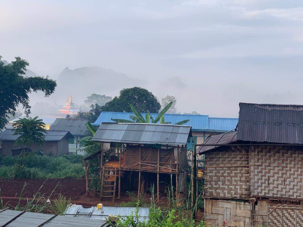 The village looked very misty this morning and there is something quite captivating about wandering outside and cleaning your teeth in the open air. Not so romantic having to avoid the snails on your way to an outside dunny though.