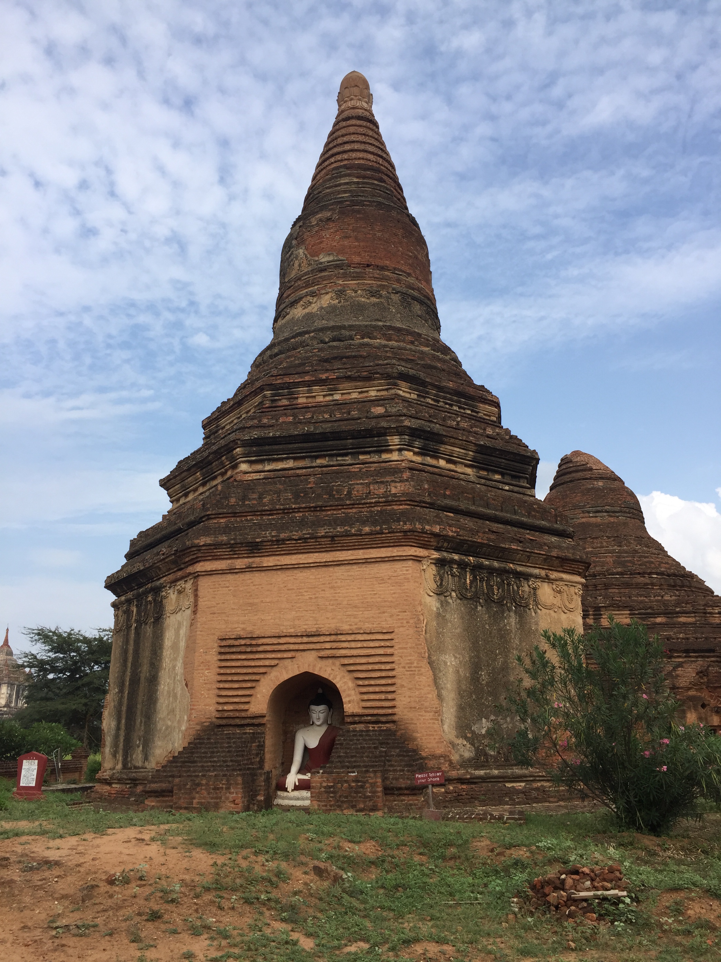 Our flight to Bagan had us up very early and on arrival our rooms weren’t ready so we toddled off to the Shwezigon Pagoda, just 5 minutes walk away. It was very busy and to be honest it didn’t really float my boat. I’m a bit of a philistine saying this as it’s a very important temple here, not least because it holds one of Buddha’s collarbones and a tooth. Apparently.
