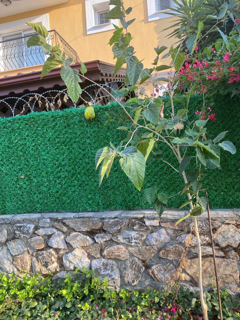 What on Earth makes someone put razor wire around their house? No one else in the street has it. My imagination went into overdrive- had something unspeakable happened? But our friends would know – Dalaman is a hot bed of gossip. Steve thinks Mr Pilot is probably from Istanbul and doesn’t trust anyone. My friend Pip thought it was to keep cats out.