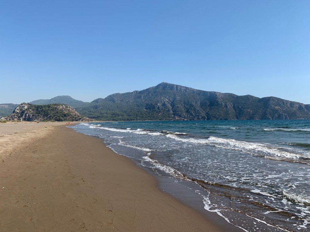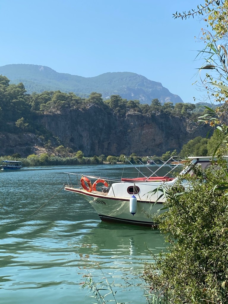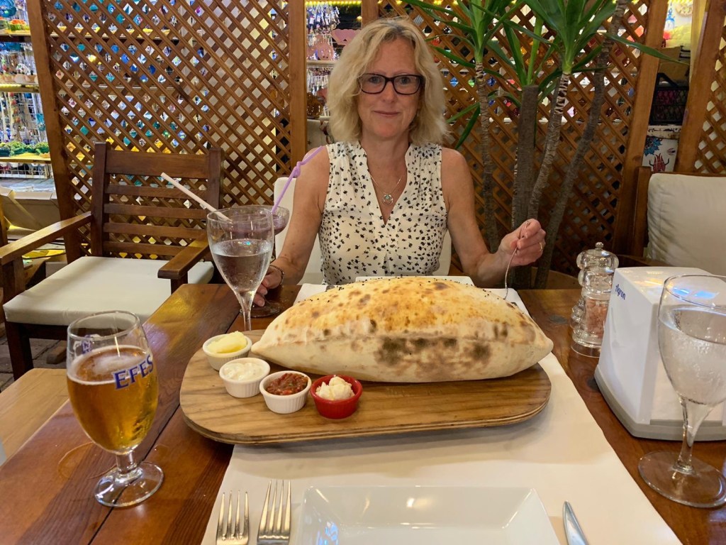 We did manage a trip to the beach where once we got away from the hoards (why do people crowd together when 10 minutes walk away there is no-one?)we could walk mask free along the sea edge. Oh and we had lunch by the river at a very nice vegetarian cafe. I’m fairly sure it will be the only one in Dalyan as most Turks think anyone who doesn’t eat meat should be sent to the asylum immediately.