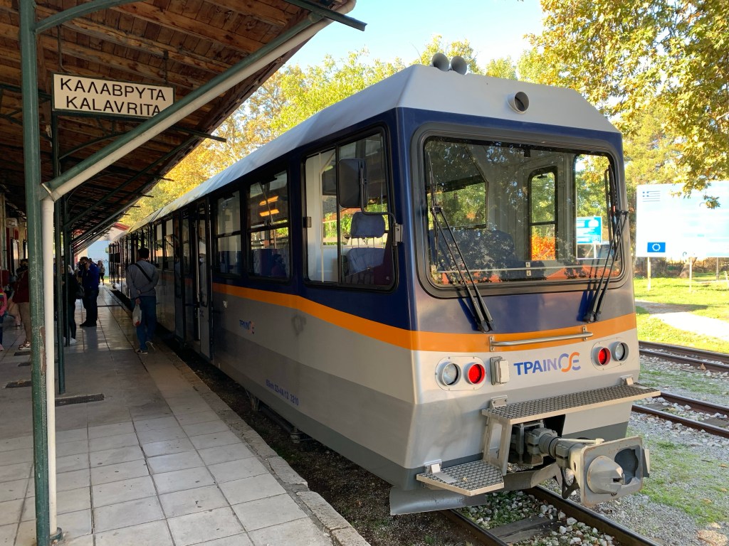 Built in 1889, it’s a cog railway line that goes up into the mountains, crossing the Vouraikos gorge and finishing in Kalavryta. It takes about an hour.