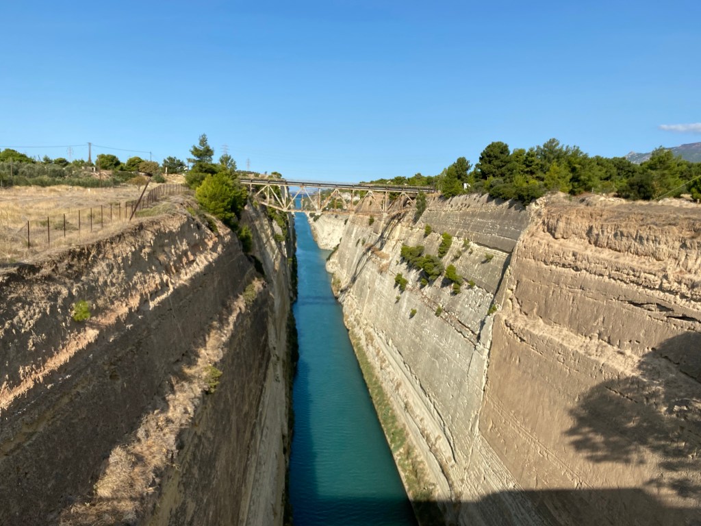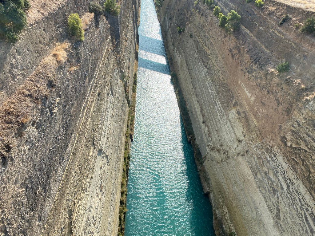 Today, on our way to the airport, we managed to stop and have a look at the Corinth Canal. It is deeply under valued as a tourist destination, in fact it was quite sad that such a historical and incredible feat of engineering was surrounded by nothing bar a couple of cafes and a scrubby bit of land with barbed wire.