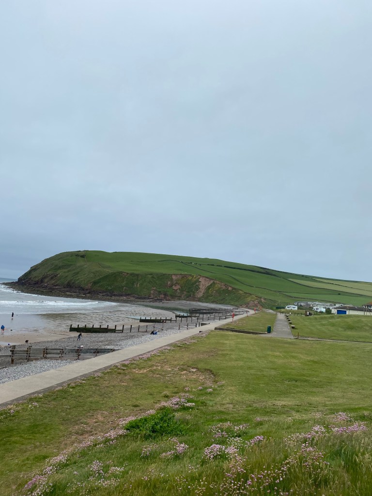 Next stop St Bees beach. Very reminiscent of Pembrokeshire – grass covered cliffs fringing the sea. Very pretty. Very cold.