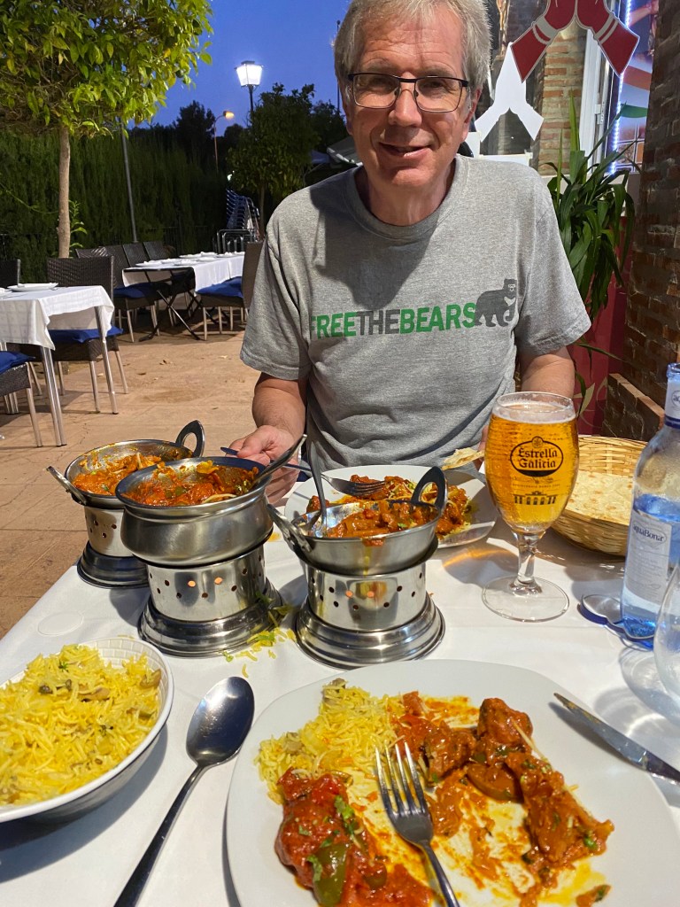 We walked all the way to Vista Hermosa which is very posh, and had drinks at a restaurant overlooking a very pretty bay. When we got home, we had a swim in the pool then went out to eat at a nearby….curry house. I know, but when you’ve eaten as much Iberico pork as we have, you’d understand.