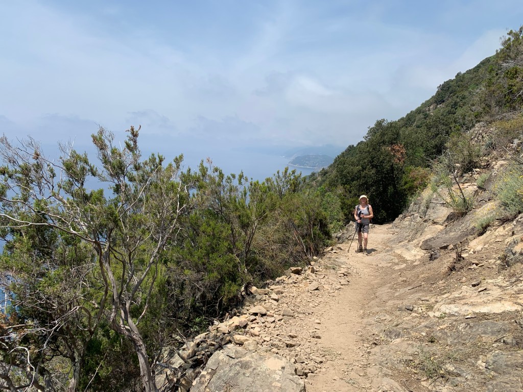 We were disgorged yet again at Monterosso but this time we were walking in the opposite direction towards Levanto. How different this was to yesterday. A fraction of the number of people we saw yesterday. There was a breeze, some shady areas and lovely sea views. Admittedly you can’t see the villages, but it was a much more pleasurable hike than yesterday’s.