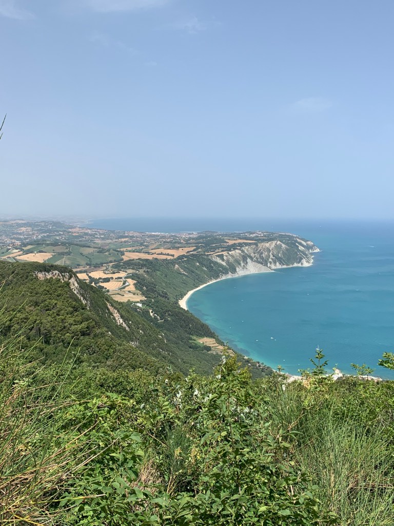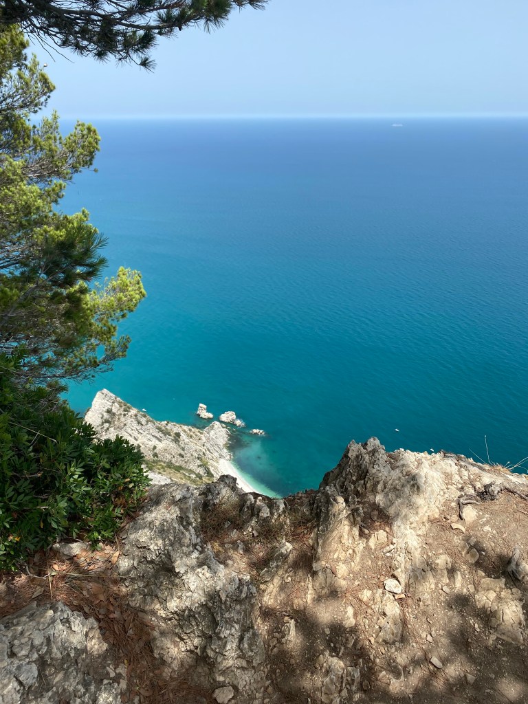 I’d been looking forward to exploring this area. Conero is a hilly peninsula to the south of Ancona and consists of woodlands on the top, plunging white cliffs and white pebbly/sand beaches. The marketing blurb describes it as the “Pearl of the Adriatic”.