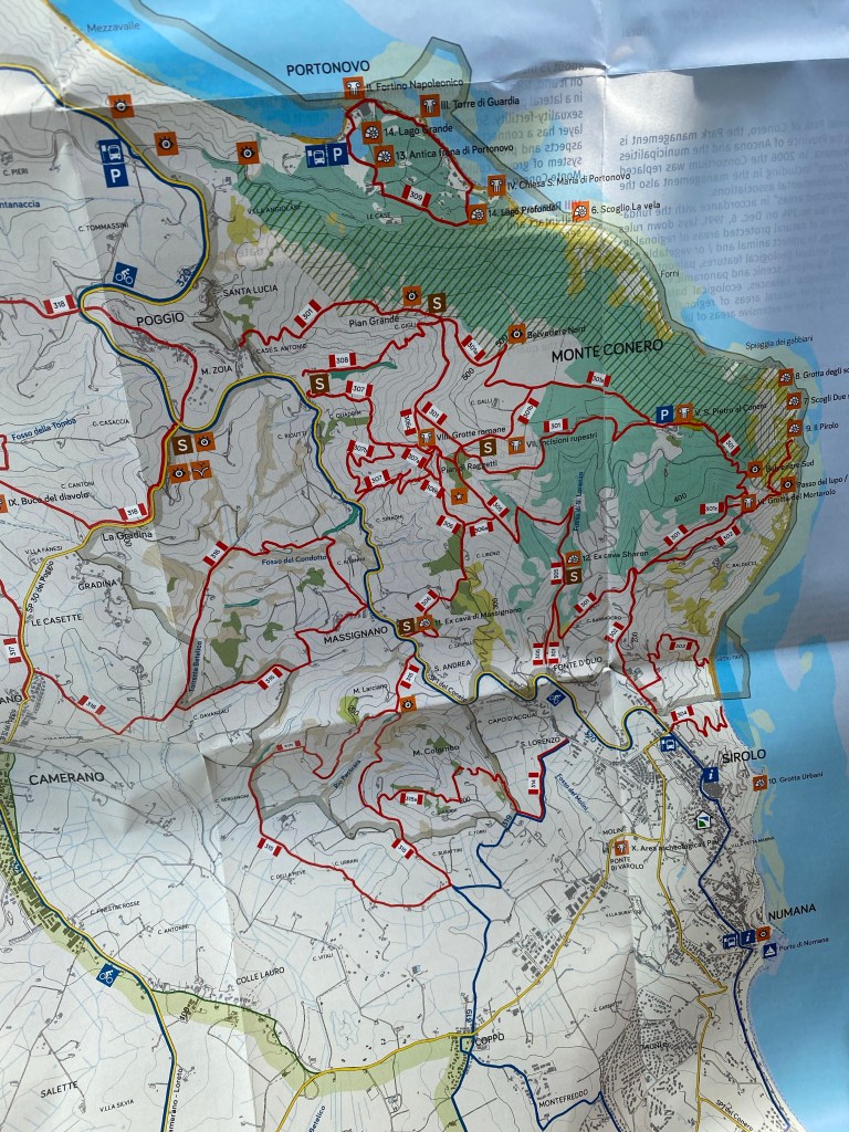The lady in the tourist information centre in Sirolo was extremely helpful and sold us a map with the trails you can walk around the peninsula. We chose to do 2 trails and interspersed them with a lunch stop.