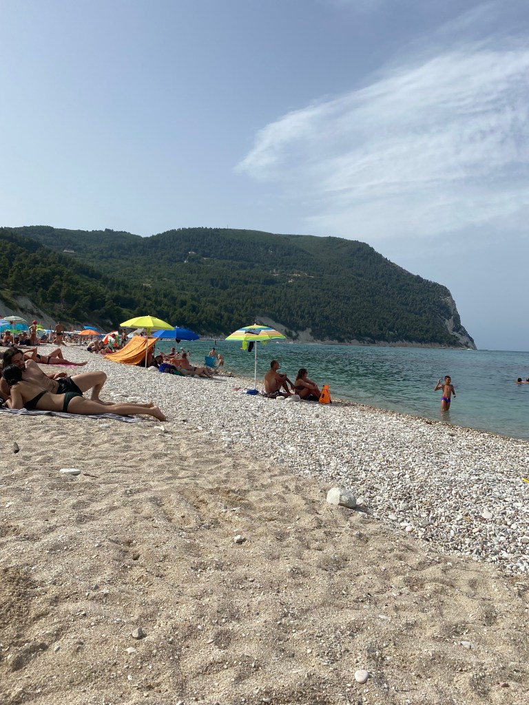 Next, the beach. We decided to go to the nearest one to us as we couldn’t be bothered to drive miles and then take another slippery path to get to a beach. We settled on Sirolo beach which was only 15 minutes away. Three car parks later and we eventually found somewhere with spaces. This was getting tiresome. It felt as though everything we tried to do either wasn’t worth doing or we were unable to do it.