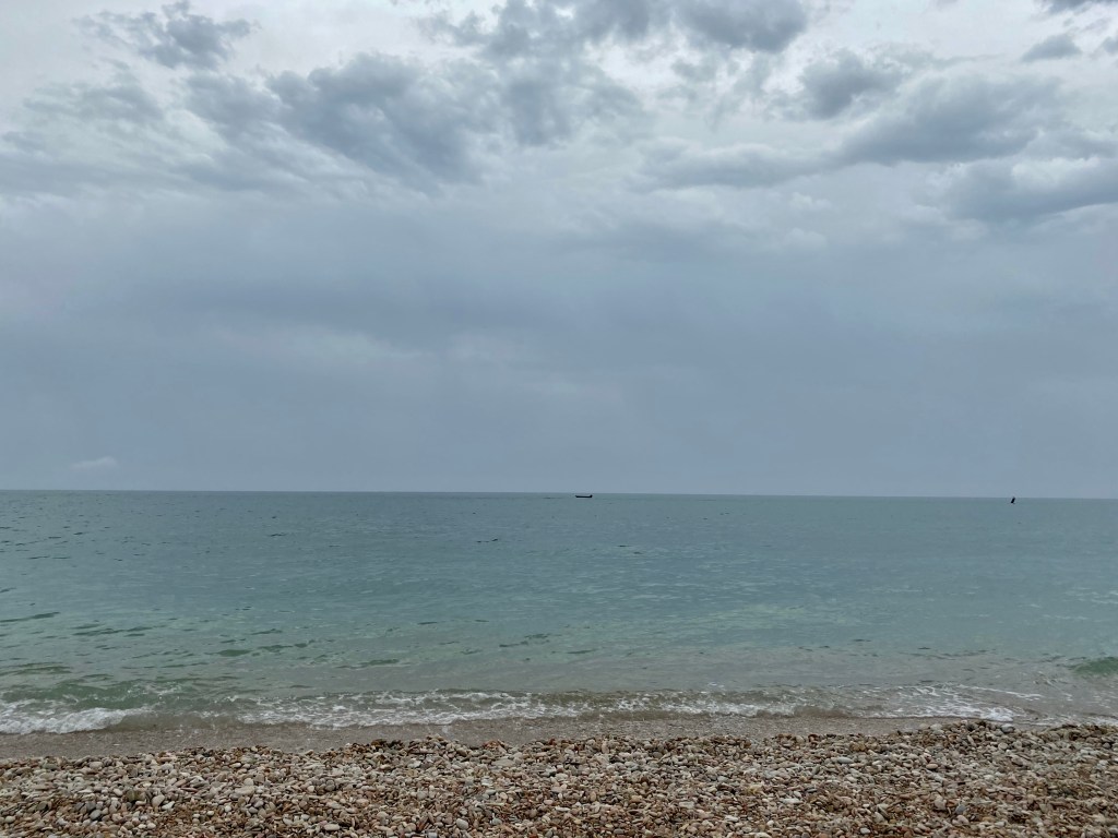 Never mind, there’s always the beach. We popped home first and had a cup of tea. I commented to Steve the air felt very heavy and humid. As we drove the 7km to Marotta I noticed there were puddles everywhere, clearly we had just missed a massive storm. At least the beach was empty.