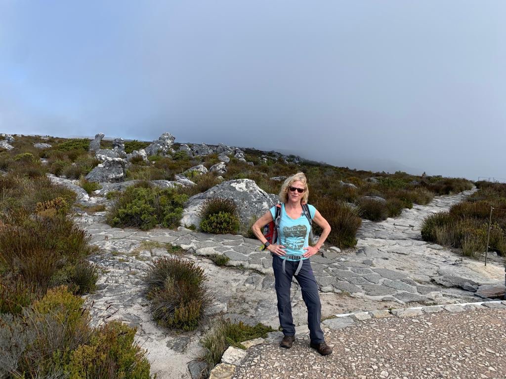 The Platteklip Gorge trail is the easiest route up to Table Mountain. The positives are it is well used (The Fear again – the path is too busy for nasty people laying in wait to mug you ) and you can’t get lost. The downside is it is a relentless upward climb to the top. No traverses and few flat areas, just straight up. However, nothing that the Lake District back home doesn’t offer us, so off we went and in an hour and a half we were at the top. In cloud.