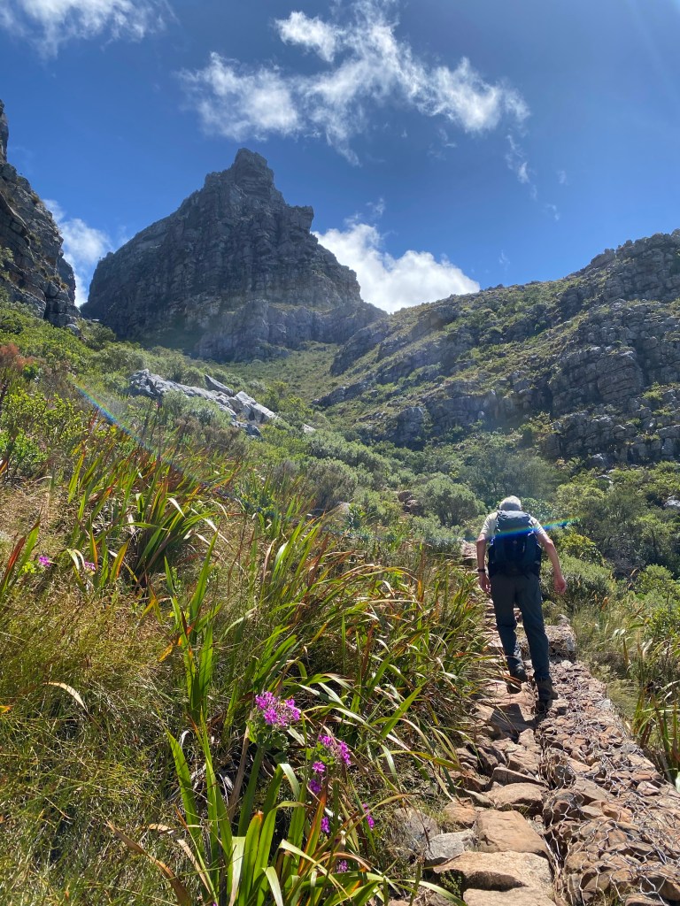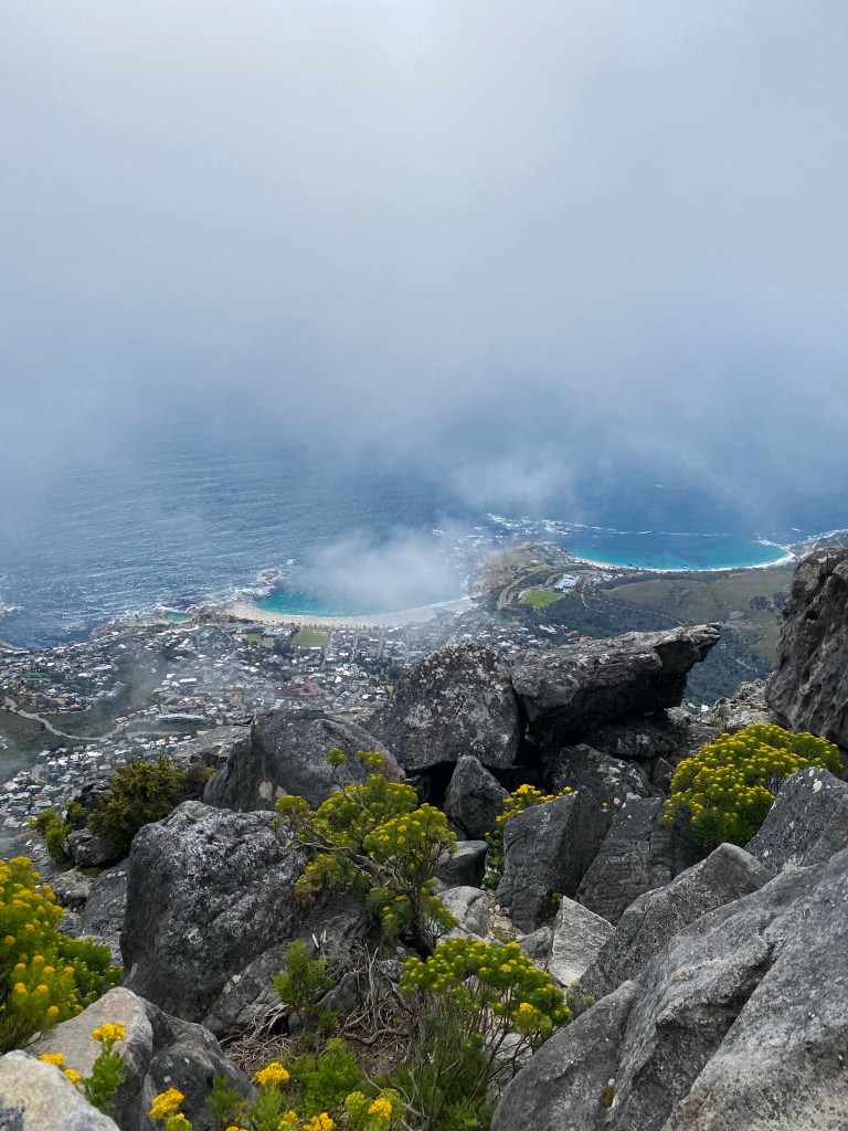 All was fine until we sat down on a wall, looking up at the summit of Table Mountain. The clouds had cleared. As had my head.