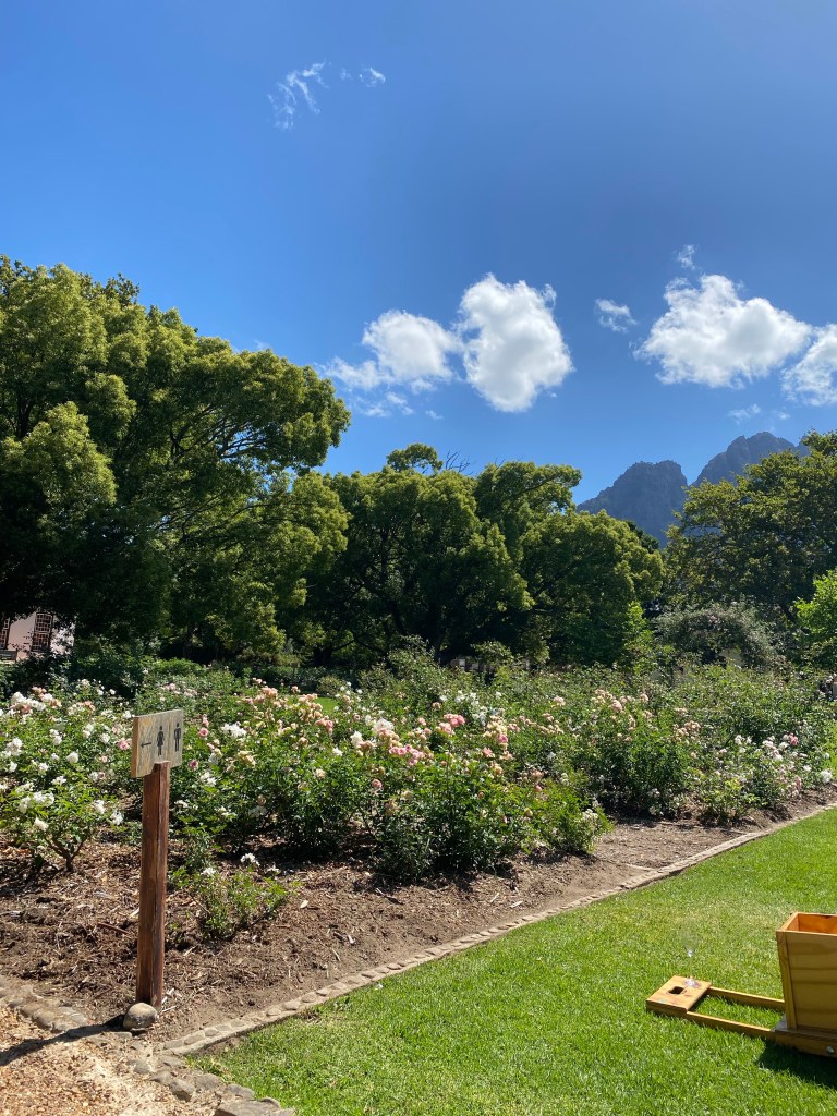 The next winery we chose to visit was Boschendal. This is the oldest winery, dating back to 1685 when the Huguenots first arrived. More polished than Anura, I went for the wine and chocolate pairing while Steve had the classic 5 wines tasting. Both were great, but the chocolate pairings were very well done and the star of the day for me. We had a quick wander around the rose garden before getting on the wine bus which would take us to the tram.