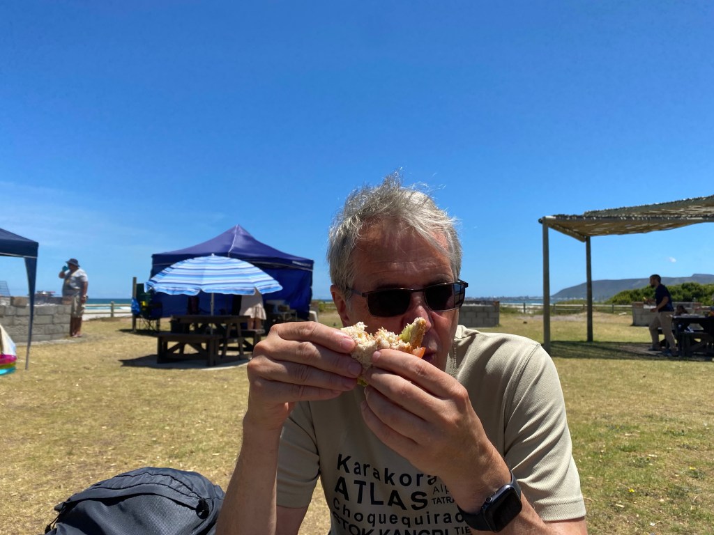 Sunday brought a near cloudless day , perfect for our second cliff path walk. This time we made it to the lagoon where we ate our sandwiches and watched enviously as people barbecued all manner of delicious foodstuffs on the public braais. No whale sightings though, they’ve moved on – we were very lucky to see them on Friday.