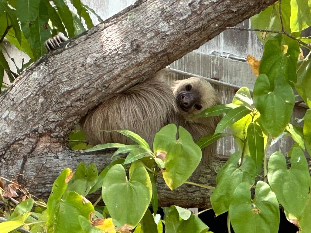 The meander along the causeway didn’t disappoint. It’s lovely. Hardly any litter, benches everywhere and great views. Very few people were walking but the bird life was very active. I still believe that it’s pointless going to remote corners of the world, fighting through undergrowth etc hoping to see the lesser spotted green owl or whatever is as rare as hens teeth in that country. Go to a car park in that country, find a tree nearby and you are almost certain to see one there. We saw a fly catcher in a tree by a bench that yesterday the guides and bird watchers were in raptures about having seen one in the jungle. We also saw a yellow headed caracara, a vulture, 2 yellow warblers and a sloth in a tree right outside an office building.