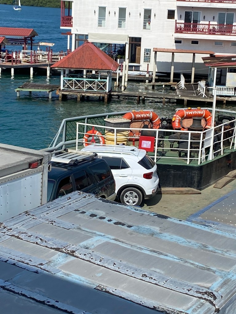 I watched the last truck get on and it was a work of art how the guys got everyone on. Well I say everyone – I don’t think the Germans made it. That could easily have been us, so I re-iterate, if you can avoid it, don’t take your car to Isla Colon. Leave it in the secure parking at Almirante, take hand luggage, catch the ferry or a water taxi. You have been warned.