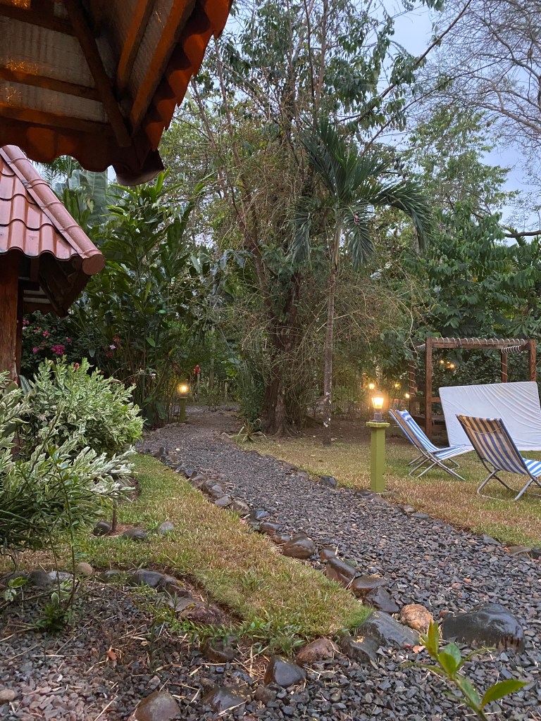 There is an above ground pool which we immediately got into (who are the kids here?) followed by a nose around the grounds. The owner isn’t here today but her presence is everywhere. There’s bhudda stuff and an outside yoga studio. There is a restaurant which serves Italian food (unfortunately isn’t open tonight.). She’s called Chantal so is probably French, immaculate and floats around gracefully in yoga pants.