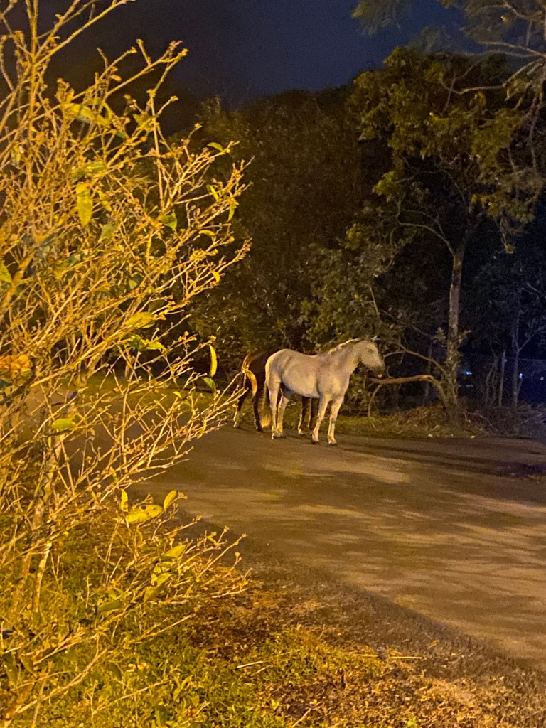 Finally, the weirdest thing that happened in a generally strange and not that brilliant an evening was seeing two horses trotting down the quiet side street we were walking home on.