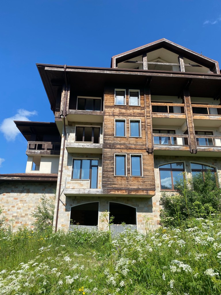 As we walked along the road taking us to the lakes, we saw more evidence of the ludicrous over building that has scarred some areas of Bulgaria. Not quite on the scale of Bansko, but still a blot on the landscape are abandoned apartment blocks where the money ran dry and building companies just left their projects to rot.