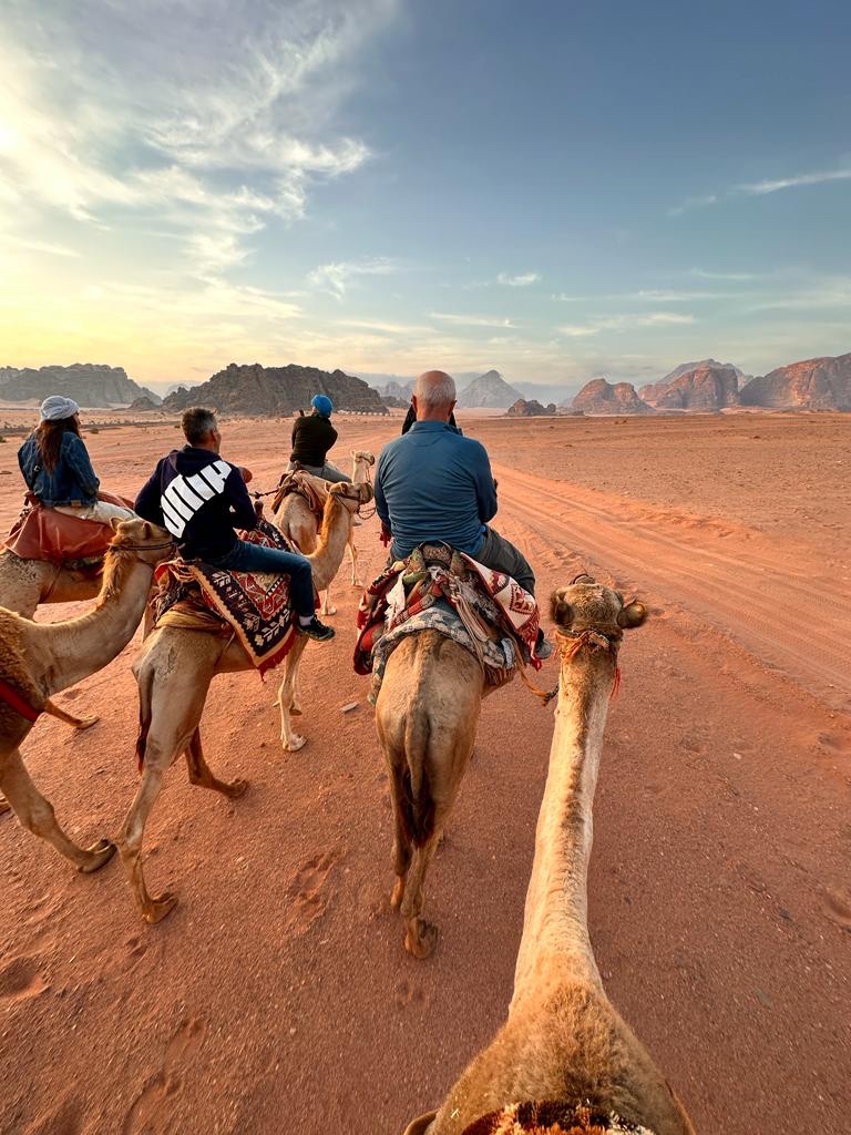 The sun did its job as it does every day and we got back on our camels, gently loping back to our camp. I was most impressed with Steve. Copying the Bedouin’s rasping camel noise he got his own camel to sit down – we have a camel whisperer on our hands.