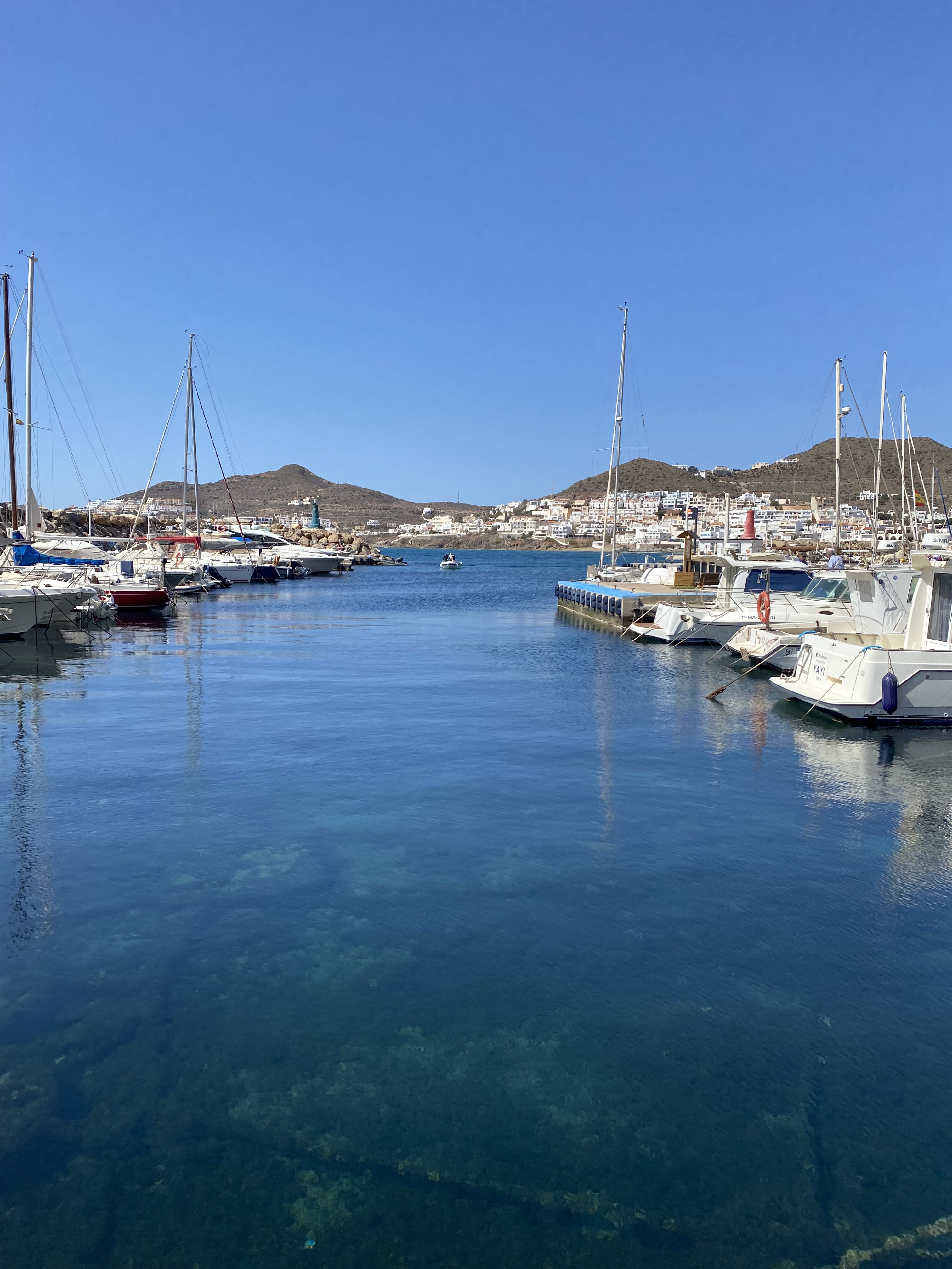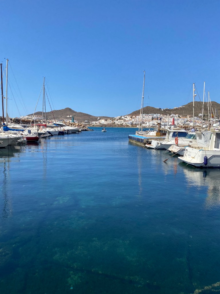 I’m impressed. After the awful fruit and veg sprawl, San Jose is easy on the eye. Like a less wealthy Santorini (I’m not saying poor as San Jose has a reasonably well heeled feel to it) there’s a blue and white theme which is very pleasant. Most of the people here are Spanish, doing their thing of late, lazy lunches and heading to the beach about 5pm.