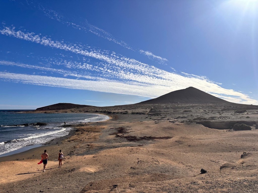 El Medano is famous for its windsurfing and kite surfing. It also has a big old lump nearby called the Montana Roja, formed “by successive explosions fruit of the violent vaporization of the sea waters”. Thanks for that Wikipedia. However it came into existence, we were going to get to the top of it.