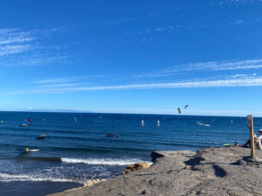 El Medano proved to have a very pleasant surfer sort of vibe to it. About half an hour’s drive from Costa Adeje and quite close to the airport, it has the longest beach in Tenerife at about 2 miles long. I would imagine the currents are quite strong as far as swimming is concerned but there were no shortage of kite and windsurfers dotting the sea.