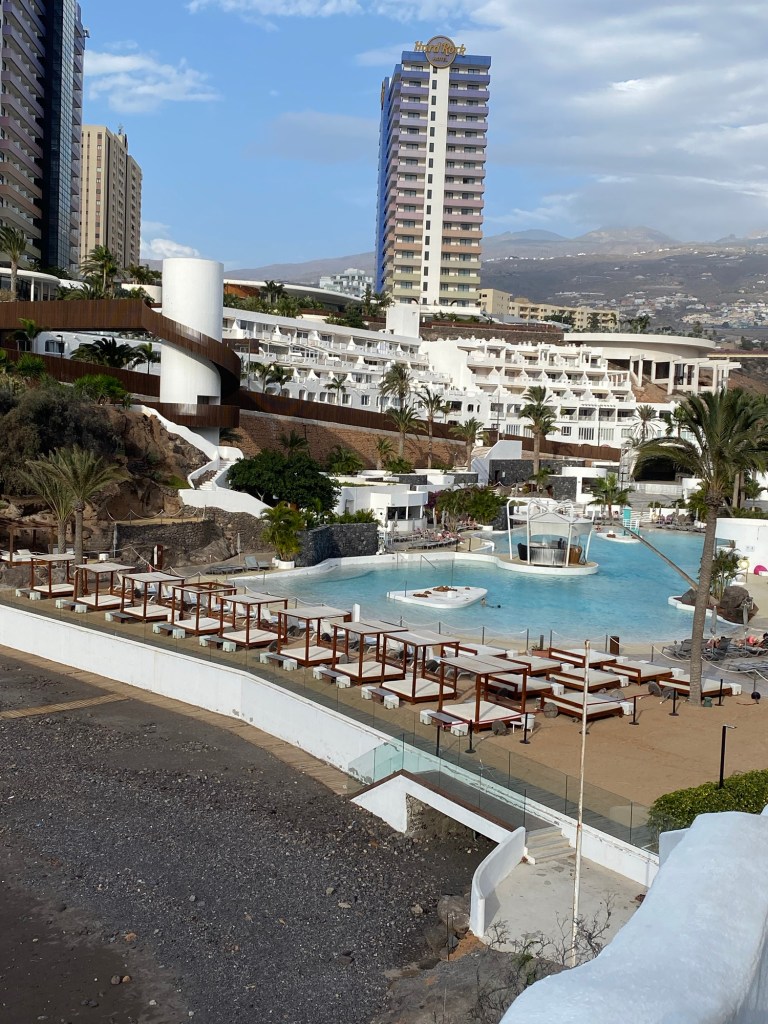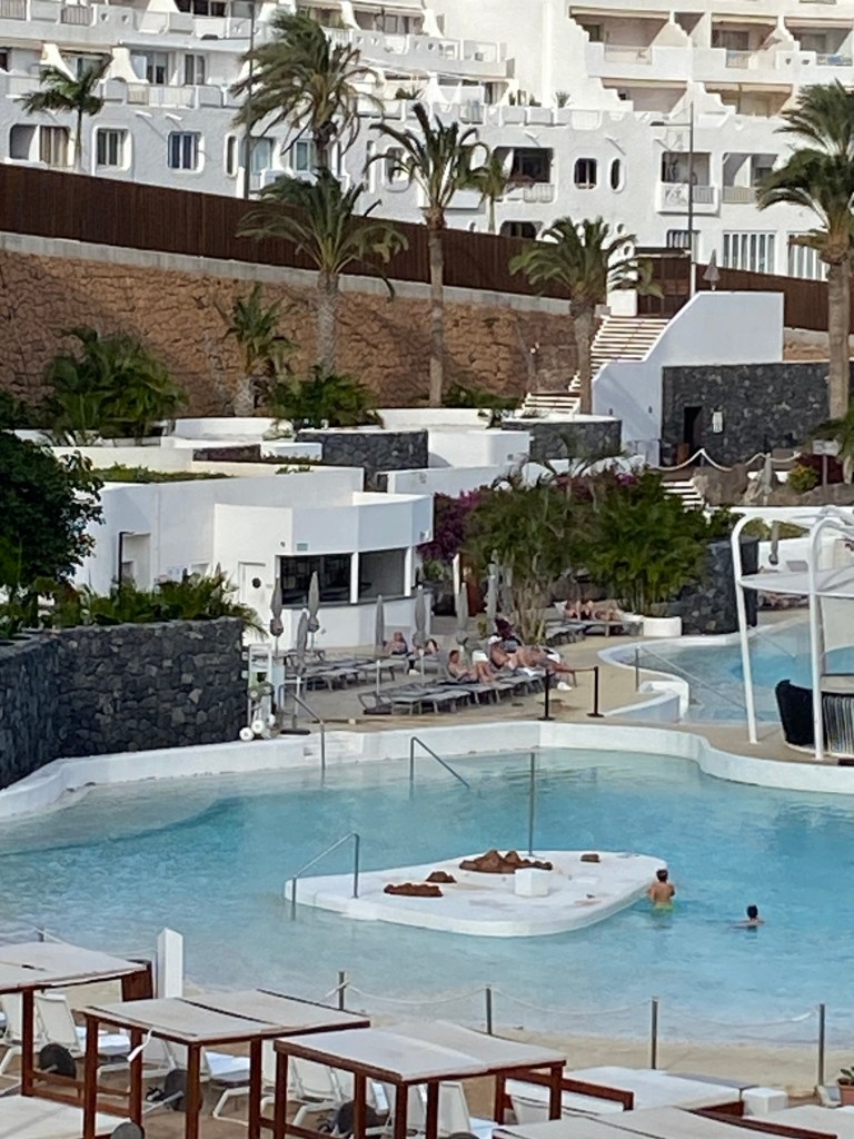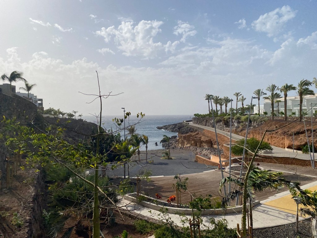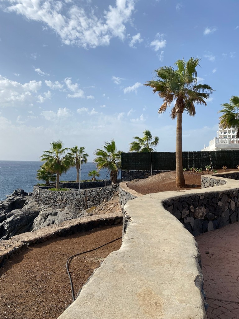 We then walked along the promenade that hugs the coast. The promenade is clean, neat and has scenic views. I wonder if this is part of the price to be paid by the developers who build all the hotels that line Tenerife’s southern coast. Everyone including locals can enjoy it. The new hotels and apartments that perch along the side of the walkways look manicured. However the size of them is mind boggling. Many of the hotels have over 500 rooms each – it’s staggering the number of people that the area has to sustain. Where does all the sewage get processed and where does the water come from? There is a shortage of water which is of course being blamed on climate change and desalination plants are being built at great expense. The hospitality industry is being directed to pay more for its water useage but no one is actually saying stop building for tourism.