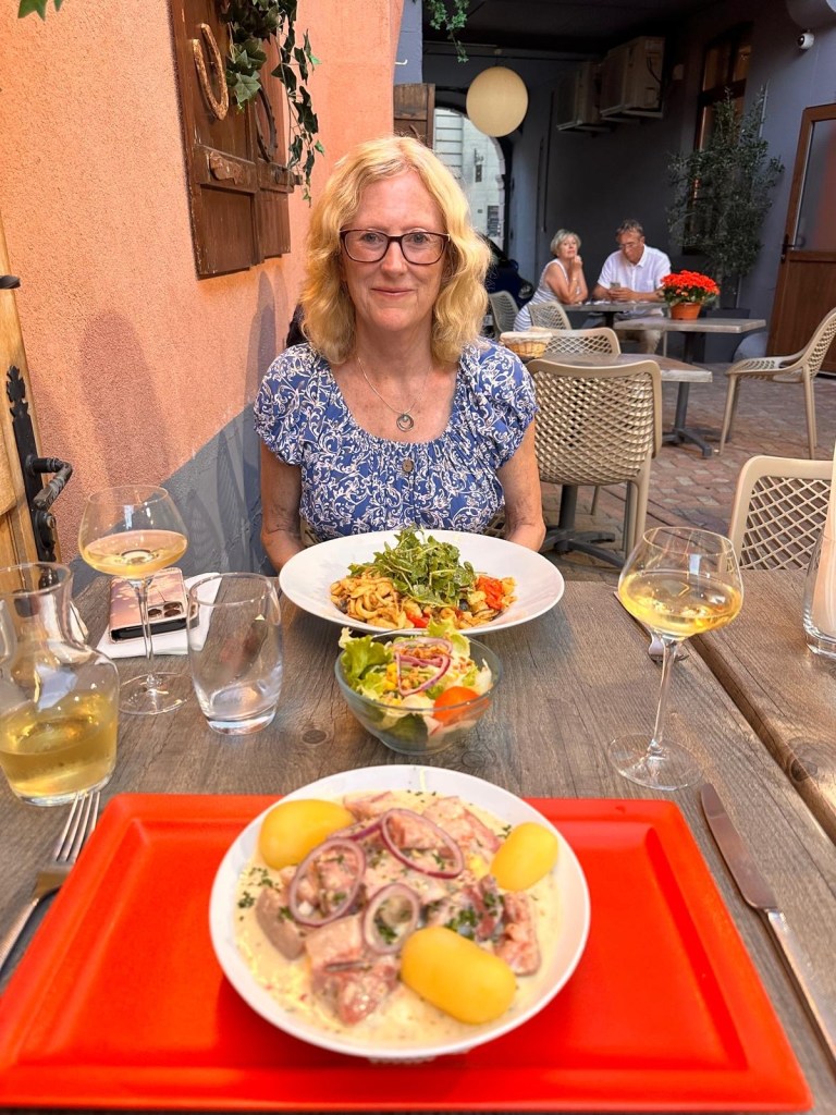Quick shower then back to the old town where we ate at the Place d’ville de Paris which served local food and was very tasty. I won’t tell you what S had, but it’s in the same league as pig’s ears.