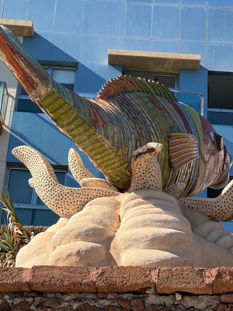 As long as you don’t concentrate on the ugly wind turbines and instead turn your attention to the sea and the little cafe/restaurants that line the promenade, it’s very pleasant. There are indeed little sculptures everywhere and we managed to spot a little boy holding an octopus and Gran Canaria’s very own Molly Malone amongst others.